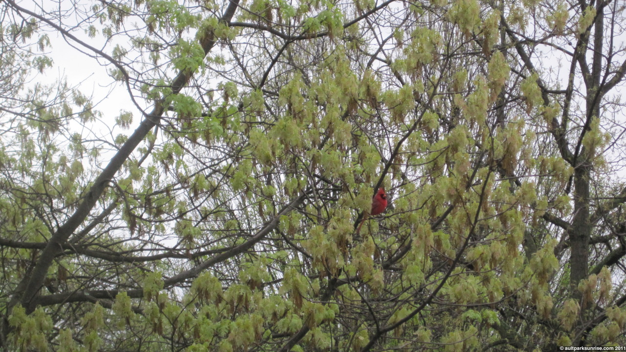 On the way out of the park, just before hopping on my bike, a cardinal landed near by. I’ve found that any movement spooks them so I was fortunate to have my camera in hand to take a picture from where I was standing. Getting any closer is nearly impossible!