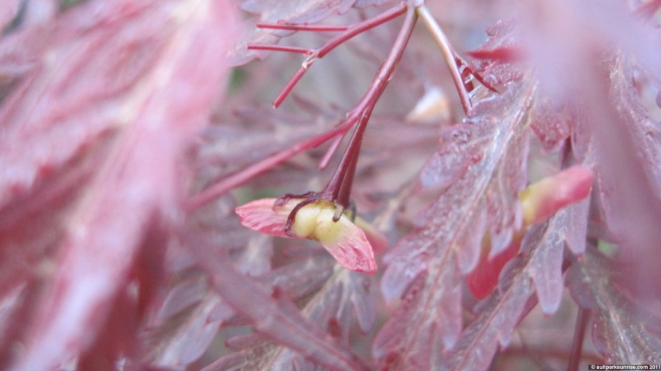 The japanese maples looked a deep reddish color in the gray light.