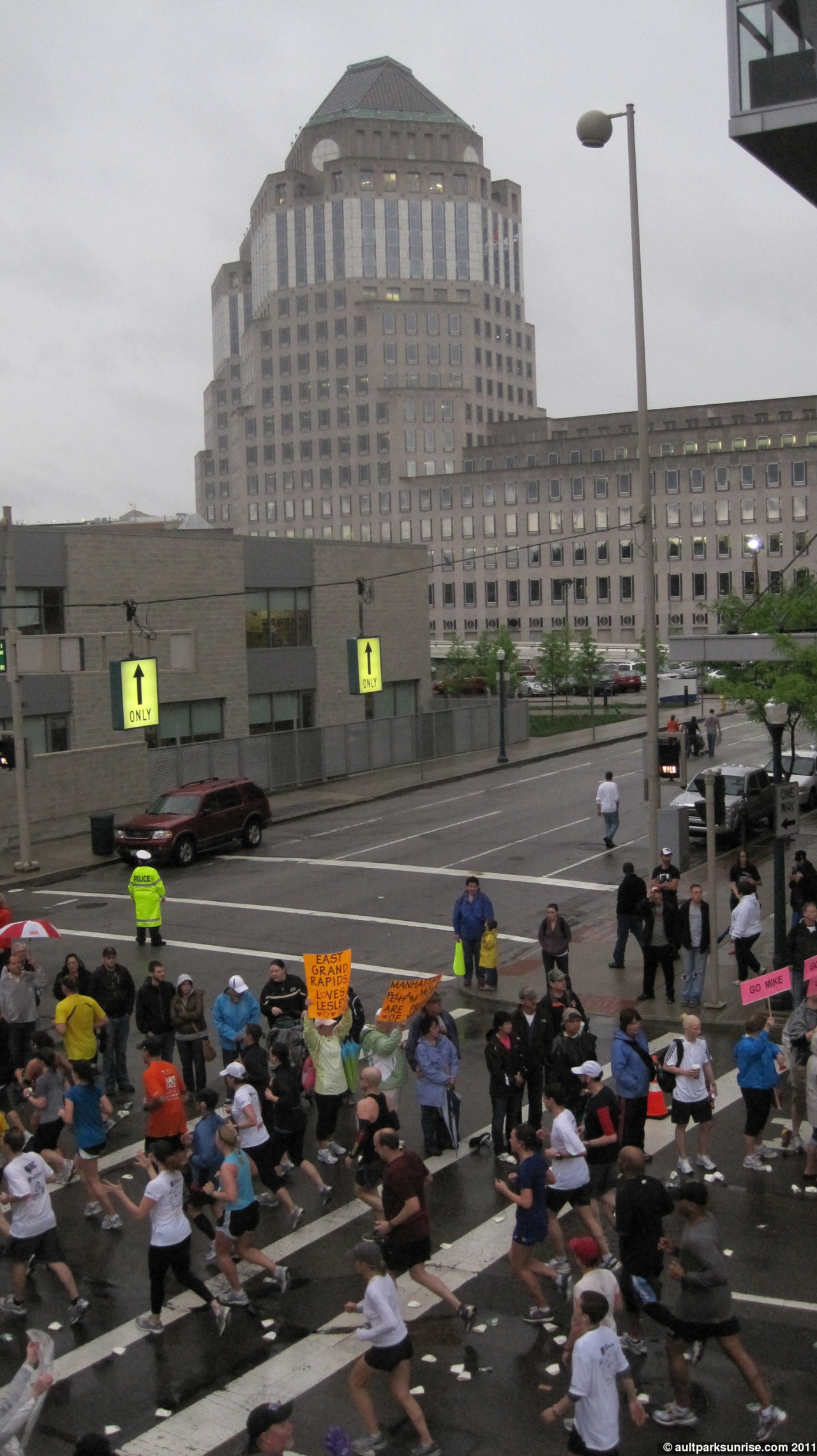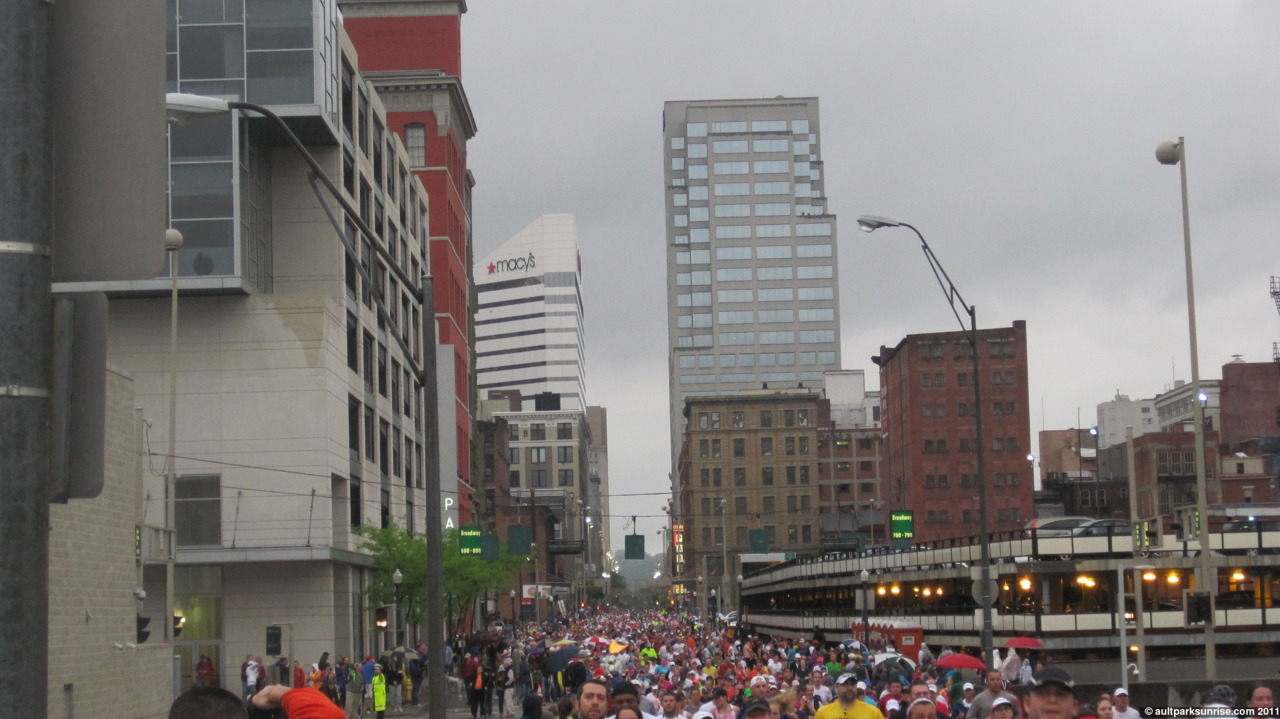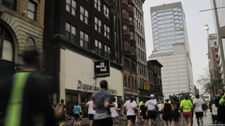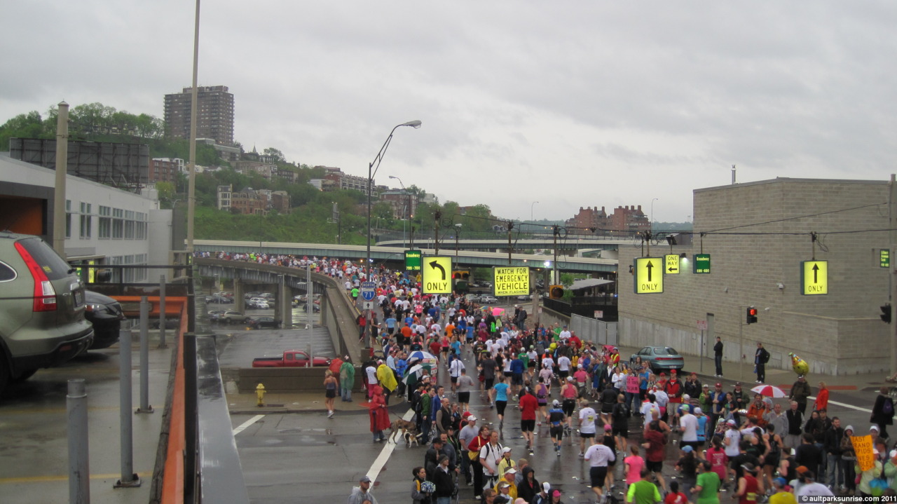 On the way home, a good 4.5 hours after we arrived for the race, we swung through East End. The marathoners were still out pounding the pavement with only 4 miles to go.