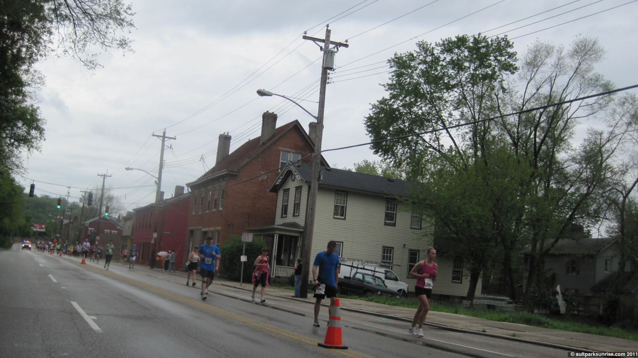 Upon reaching the end of eastern downtown, the runners headed up gilbert avenue through Mt. Adams, the steepest and hilliest part of the race.