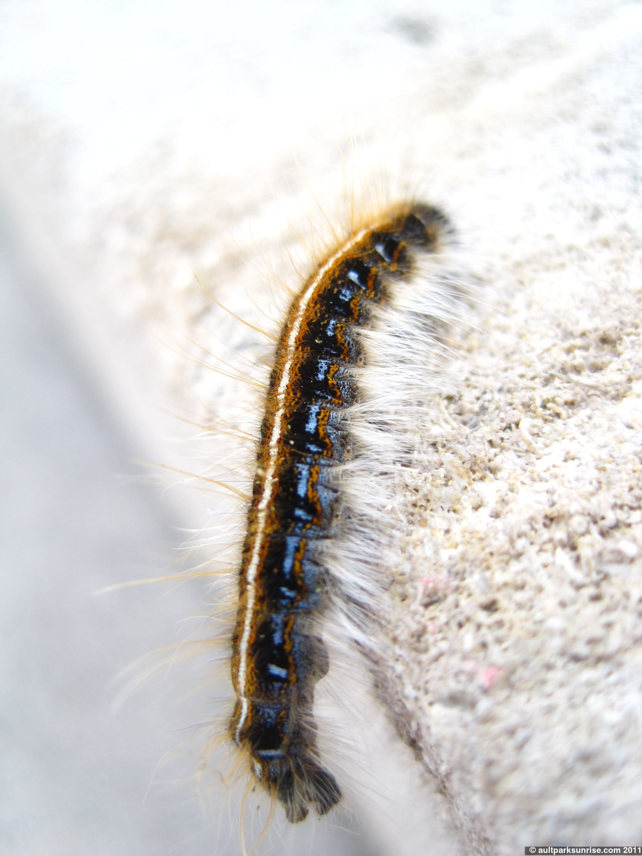 While I was sitting on the steps I noticed a young caterpillar sleeping on the concrete.