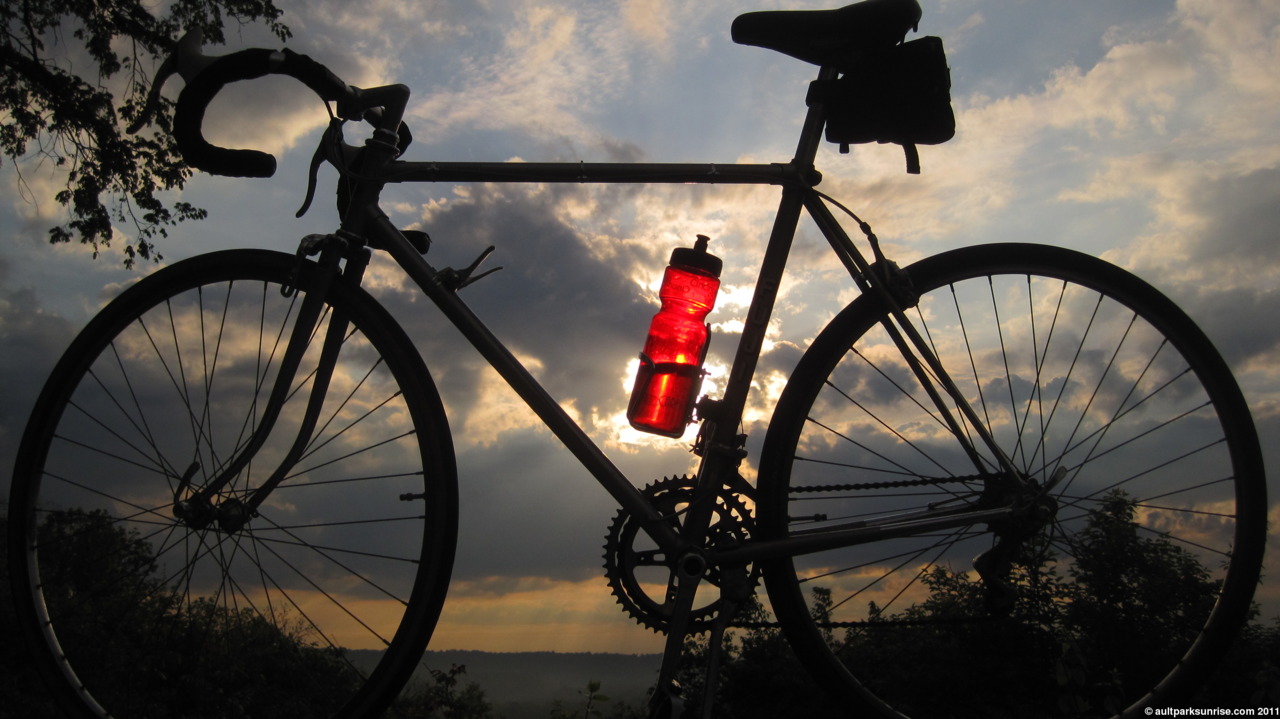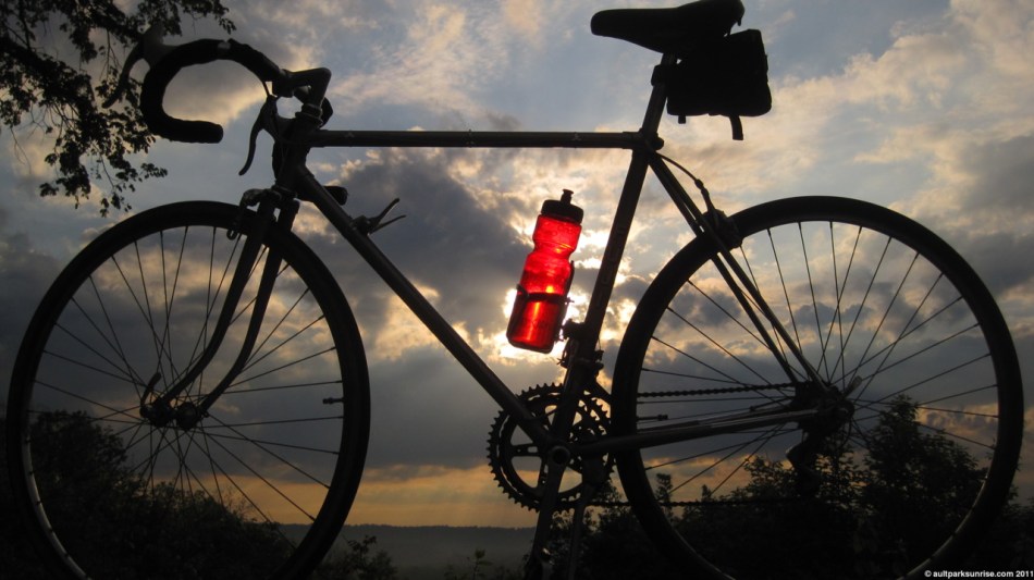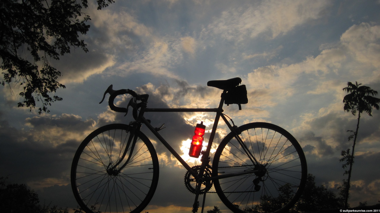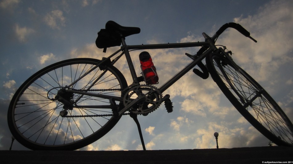 After seeing the cloudy front take over the sunset last night, I was worried that the sky this morning would be overcast. When I got out of bed and looked out the window, the was indeed a bit cloudy but it was a light covering with pockets of dark blue sky showing through. The atmosphere was on the “heavy” side of light overcast. I rode up to the park for the 6:34am sunrise but as I made my way up the hill I started to notice that the sky was darker than I would have expected. There were not any signs of orange, indicating that there was a low cloud cover over the horizon. It is worth mentioning that this week I have continued to “default” to using the second gear on my bike to go up the hills. This is something that I was unable to do even two weeks ago – the added difficulty is a welcome addition to my morning rides that are becoming easier by the day as I get into shape. Feeling a bit of pent up energy from the many rain storms, I could tell that if the lighting conditions are right I’d be taking lots of pictures today.