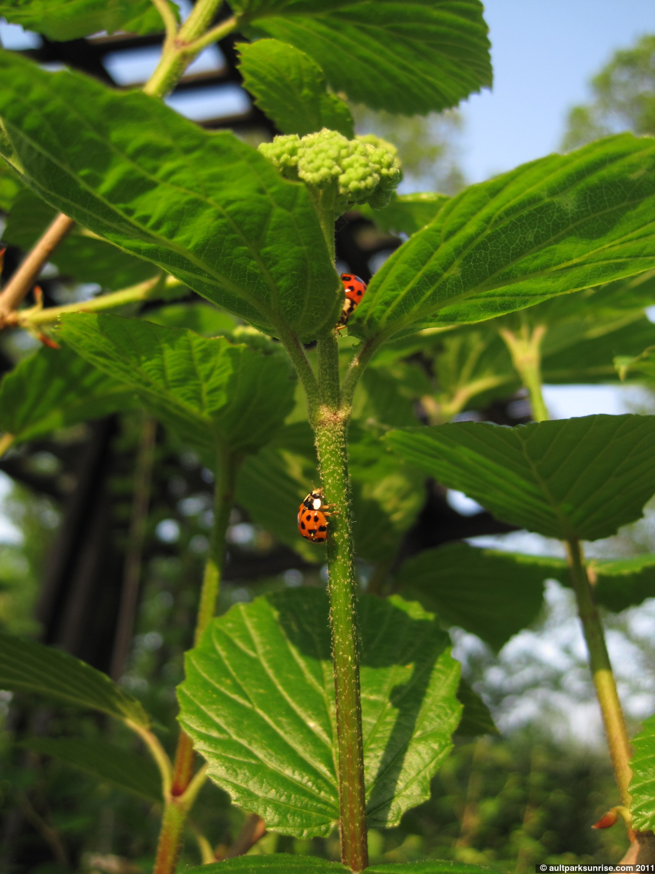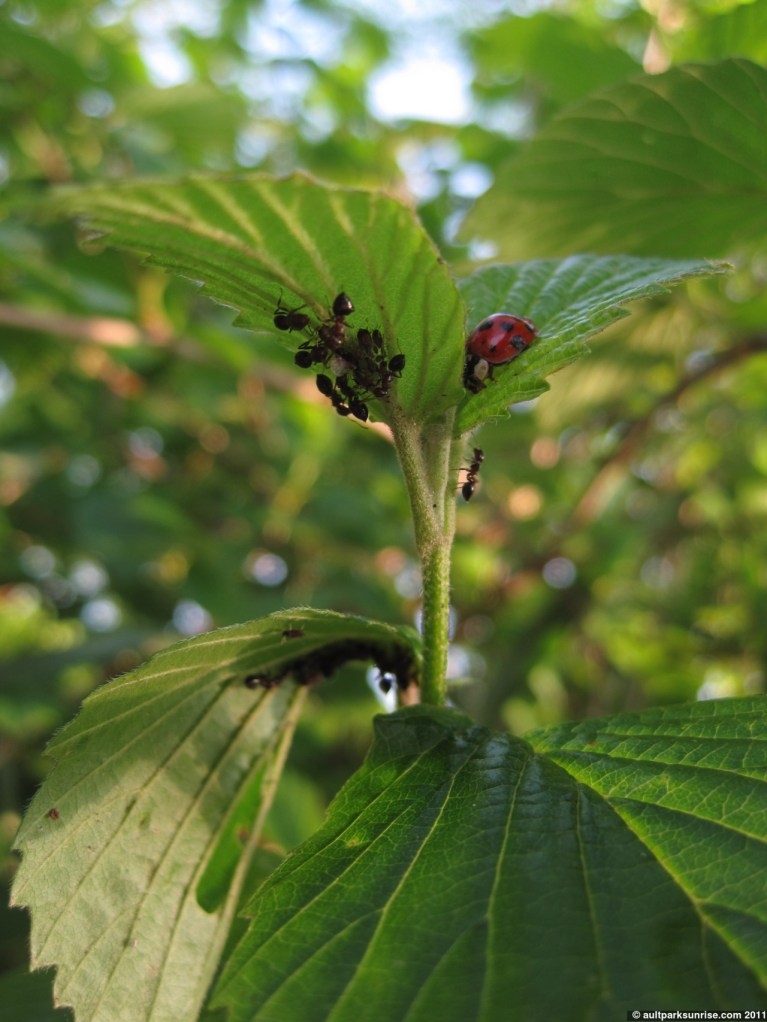 The ladybugs were trying to get their turn at the aphids, but didn’t seem to be too concerned when the ants “shooed” them away.