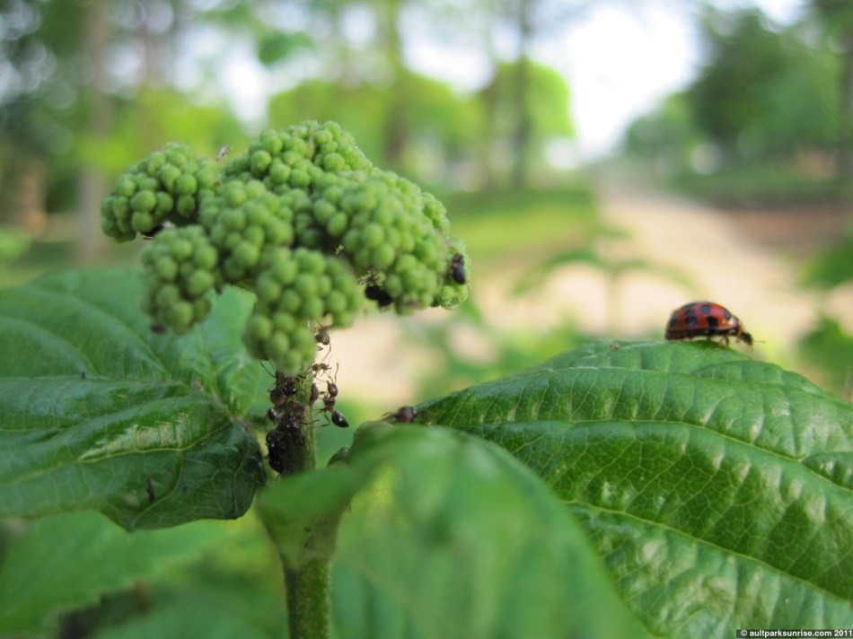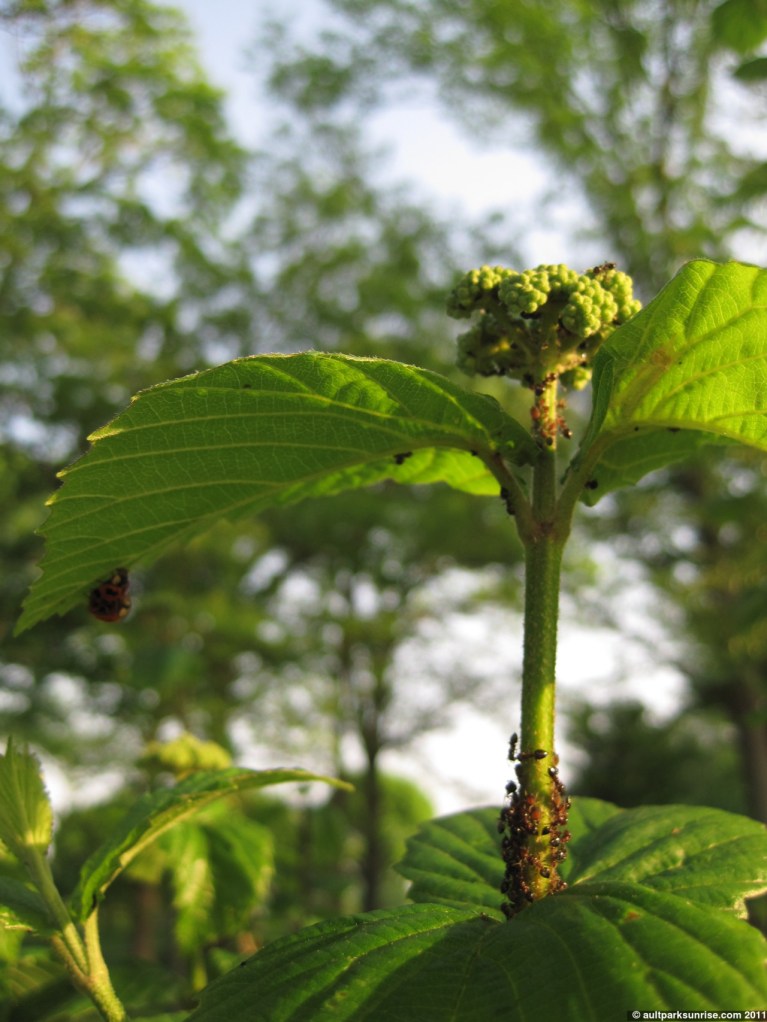 An old Asian man, I believe but am not certain he was Chinese, stopped by to see what I was taking a picture of. He showed interest in the leafs of the bush and the clusters of aphids that I pointed out. He was a friendly man who talked slowly, and he told me a rule of thumb that the mountainous people in China, Japan, and Vietnam use who don’t have access to a doctor. Aside from acupuncture, which he told me he performs on himself because it is too expensive in America, he said that green herbs can help your liver, white and roots can help your lungs, red things go to your heart, and black (like black/blue berries) go to your kidneys. My impression was that he was well over 70, maybe 80, years old, so I’m certainly going to consider his advice 🙂
