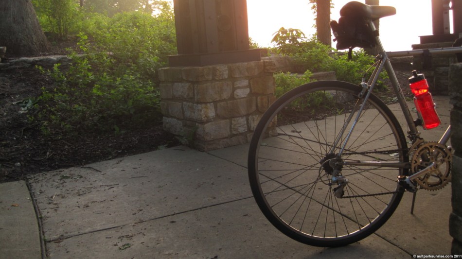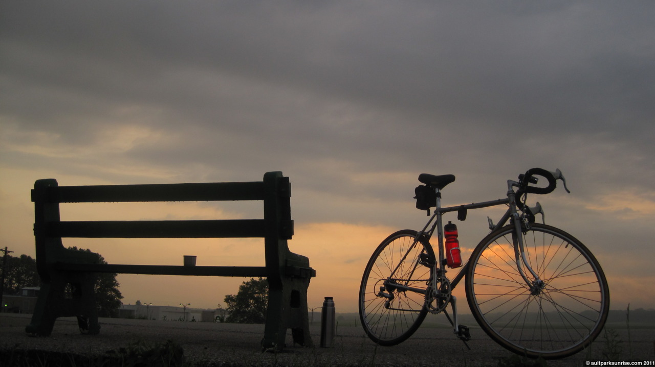 I climb up on the bike path entrance next to the terminal and find a bench to sit on. Finally, my first (second, third) cups of coffee! It appears I have indeed missed the best part of the sunrise, but all is not lost. I now know it only takes 20 minutes from Ault Park to get here, probably only 15 from Mt. Lookout Square. I may be back here tomorrow if the storms hold off.