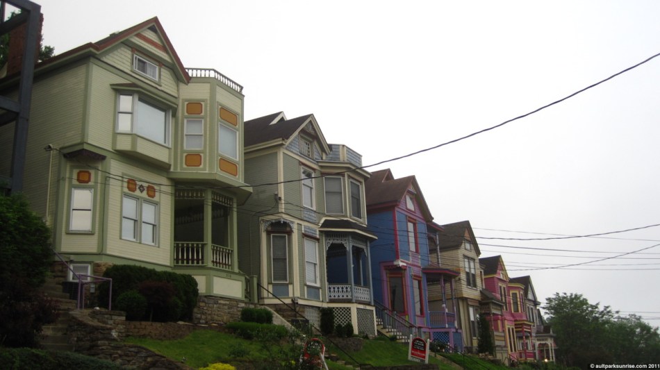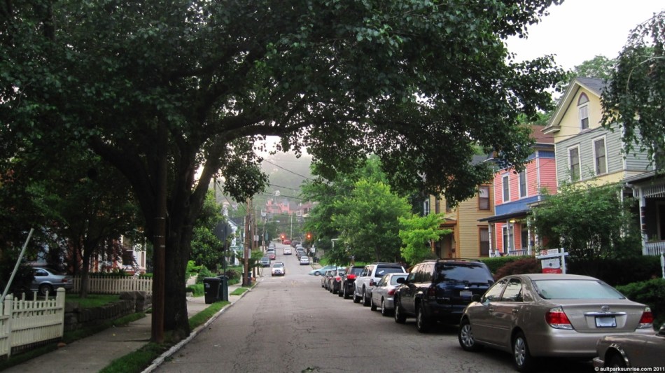 At the base of Tusculum (In this picture we’re looking back up the hill I just came down) is a beautiful little neighborhood of only a few blocks that really reminds me of some of the old neighborhoods in New Orleans. It is lush with thick trees, 100-120 year old homes, and is clean and well kept. A hidden gem of the area, in my opinion. At this point I’m down in the basin, at river level elevation. The ride down is fun (but you’ve got to be careful), the ride back up is painful but satisfying. You’re also witnessing my first ever attempt at “photoshopping” – but I actually used The Gimp (no photoshop on linux) – to remove the license plate numbers from the two cars on the right side. Success!