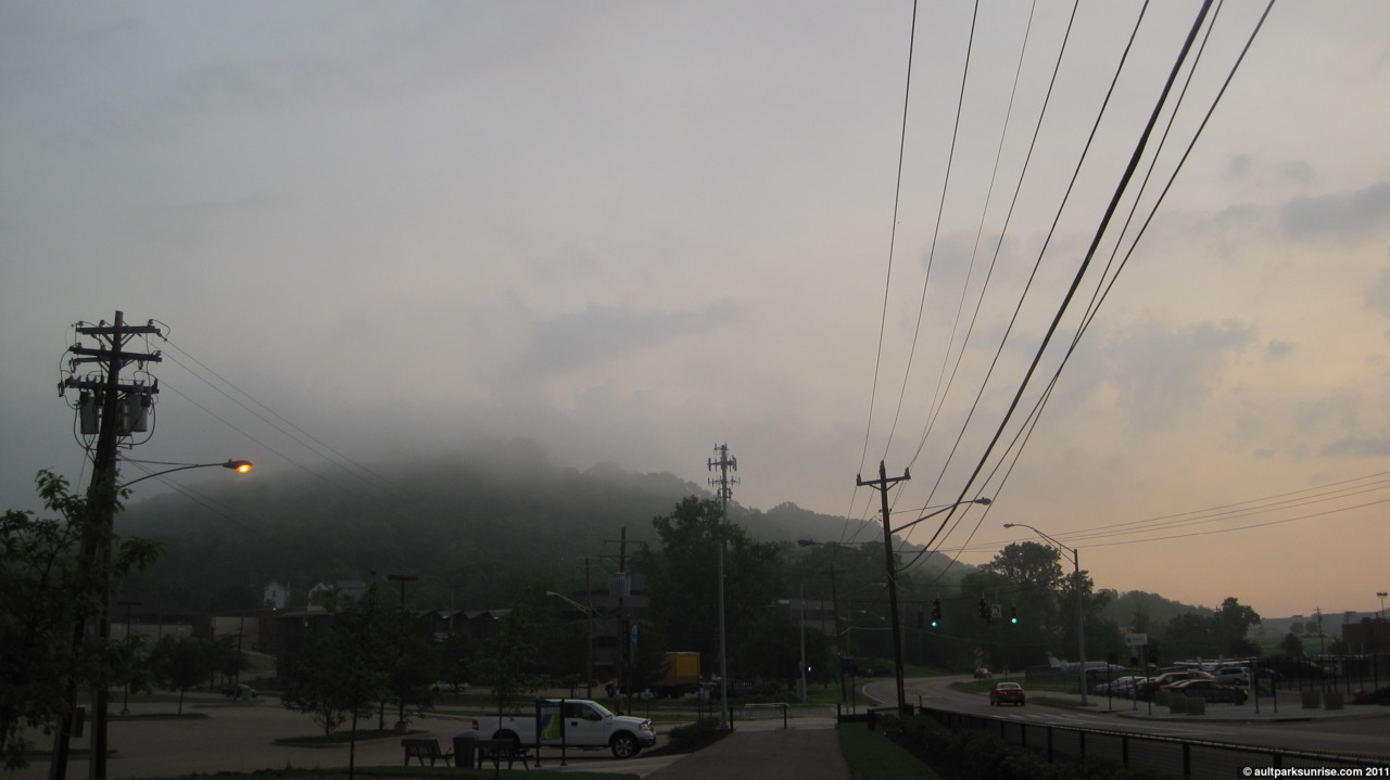 This morning was downright beautiful. I woke up to a respectable fog in the area, something that always makes me excited for the morning ride. As I rode up to the park, I noticed that the air got more clear the further I went. This is an interesting trend I’ve picked up on – Mt. Lookout seems to get more fog than the peak of the overlook. Whether this is due to elevation (200ft difference), temperature, or wind I’m not sure.