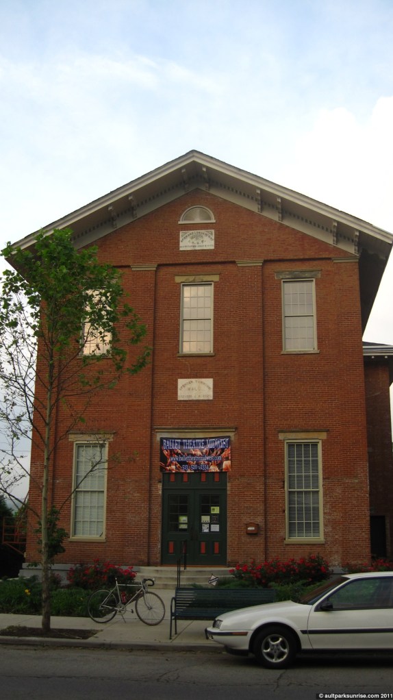On the way home I had to pass many historic buildings to save them for another day, but I couldn’t resist taking this picture. I found this building two days ago on a bike trip in the evening to Lunken. This building now holds the record for being the oldest I’ve found yet. It was built in 1860 and served as the Spencer Township Lodge. Not sure about the history of the building, or what it is used for now, but this historic article talks about the Spencer Township history in great detail. It appears that the area known as East End, Columbia, and Linwood were once villages that were a part of “Spencer Townsihp”. Now they have been emancipated into the Cincinnati “proper” city lines.