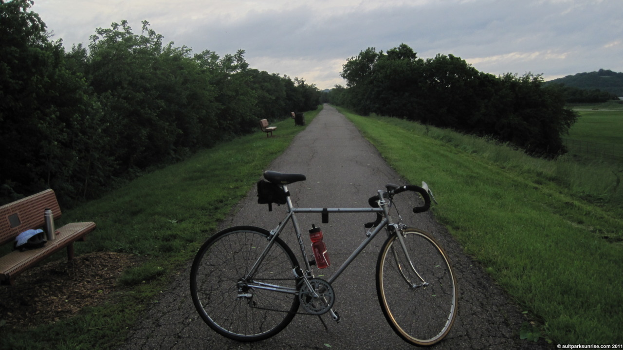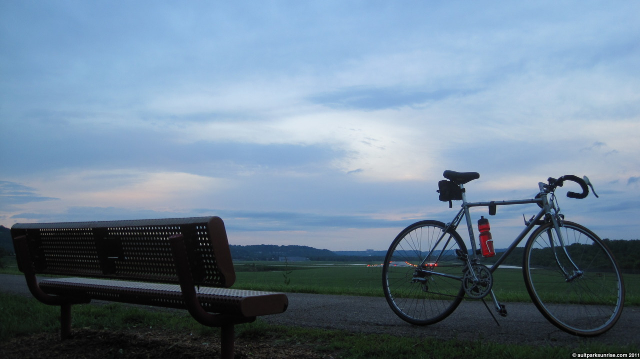After visiting Lunken Airfield yesterday morning, I thought that it would be nice to mix it up and try to catch the sunrise on the bike path that circles the airport. I set my alarm for 5:50am, giving myself about 25 minutes with a snooze to get down to Lunken. The sky had a shine of light orange and a mix of clouds so I wasn’t sure if it would be a worthwhile endeavor or not. There was the chance that there would be thick fog and I wouldn’t even be able to see the sky from down in the river basin at the airport. I decided the risk was worth it and headed down the mountain to the pre-glacial Ohio River valley where Lunken Airport snuggly sits underneath the Alms Park lookout.