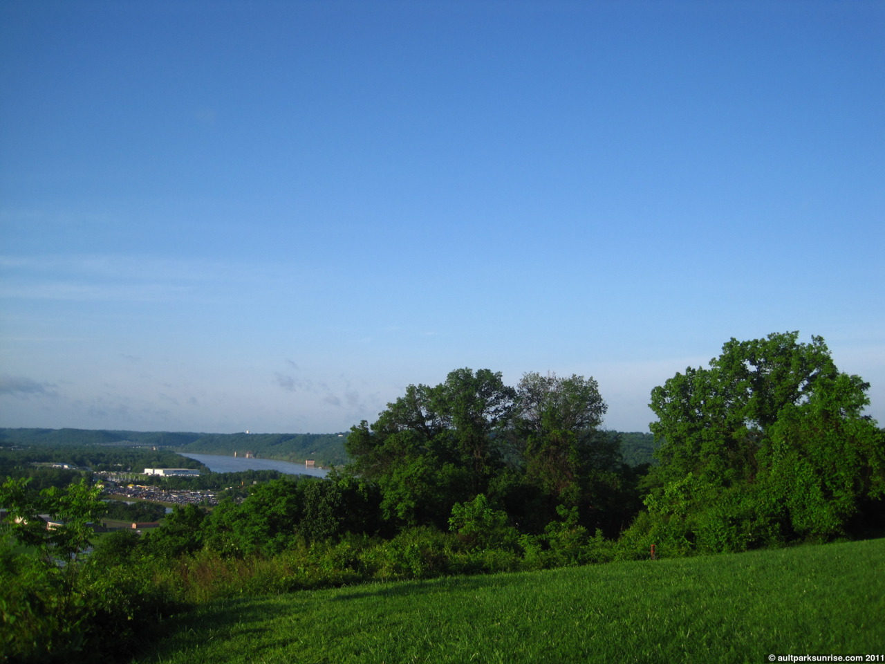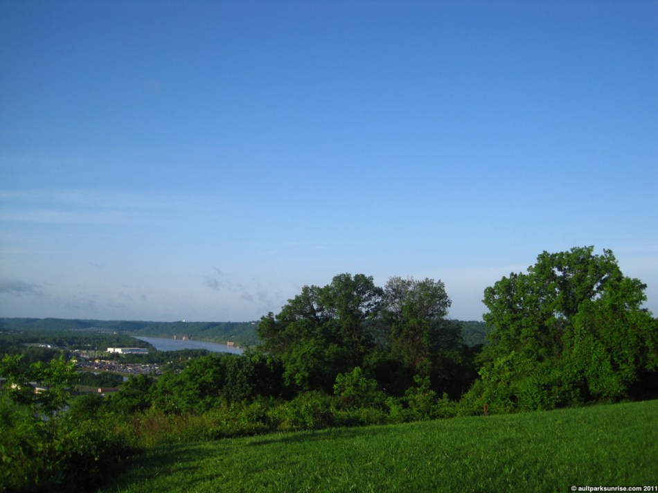 The view from Alms Park. You can see the Ohio River straight ahead. This is the overlook we saw earlier as the “horizontal white line”.