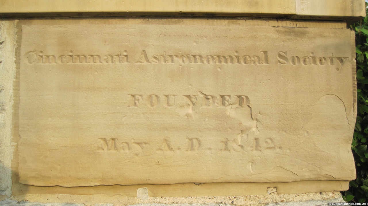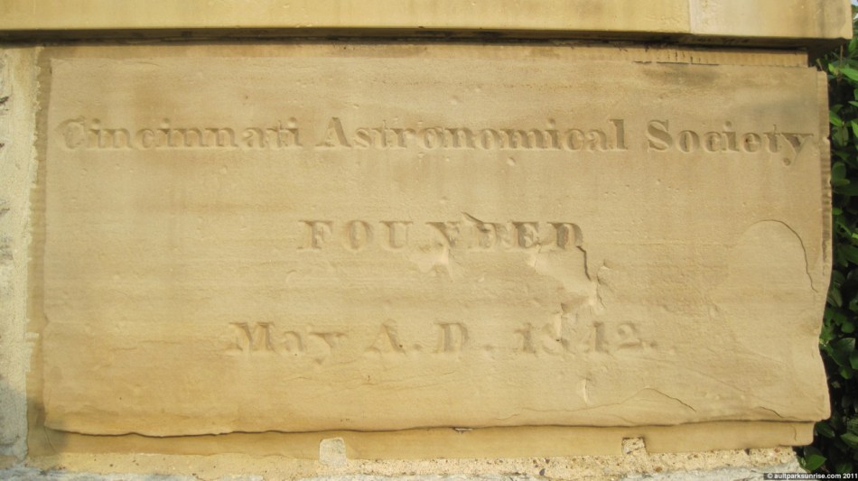 The observatory building itself was built in 1871, but the cornerstone is clearly dated to 1843. And as an additional shocker, the stone is said to have been laid by John Quincy Adams, the sixth president of the United States of America. I was confused as to what happened in the almost thirty years between the cornerstone and the construction of the current building, but after checking out Wikipedia I’ve got it all cleared up. The observatory was originally built in Mt. Adams (named after John Quincy Adams) in the early 1840s. It was moved to Mt. Lookout in the early 1870s. I believe that this cornerstone was likely moved from the original foundation in Mt. Adams over to the new building. That seems to make the most sense to me. It turns out that the dedication ceremony of the Cincinnati Observatory was the last public speech that John Quincy Adams made.