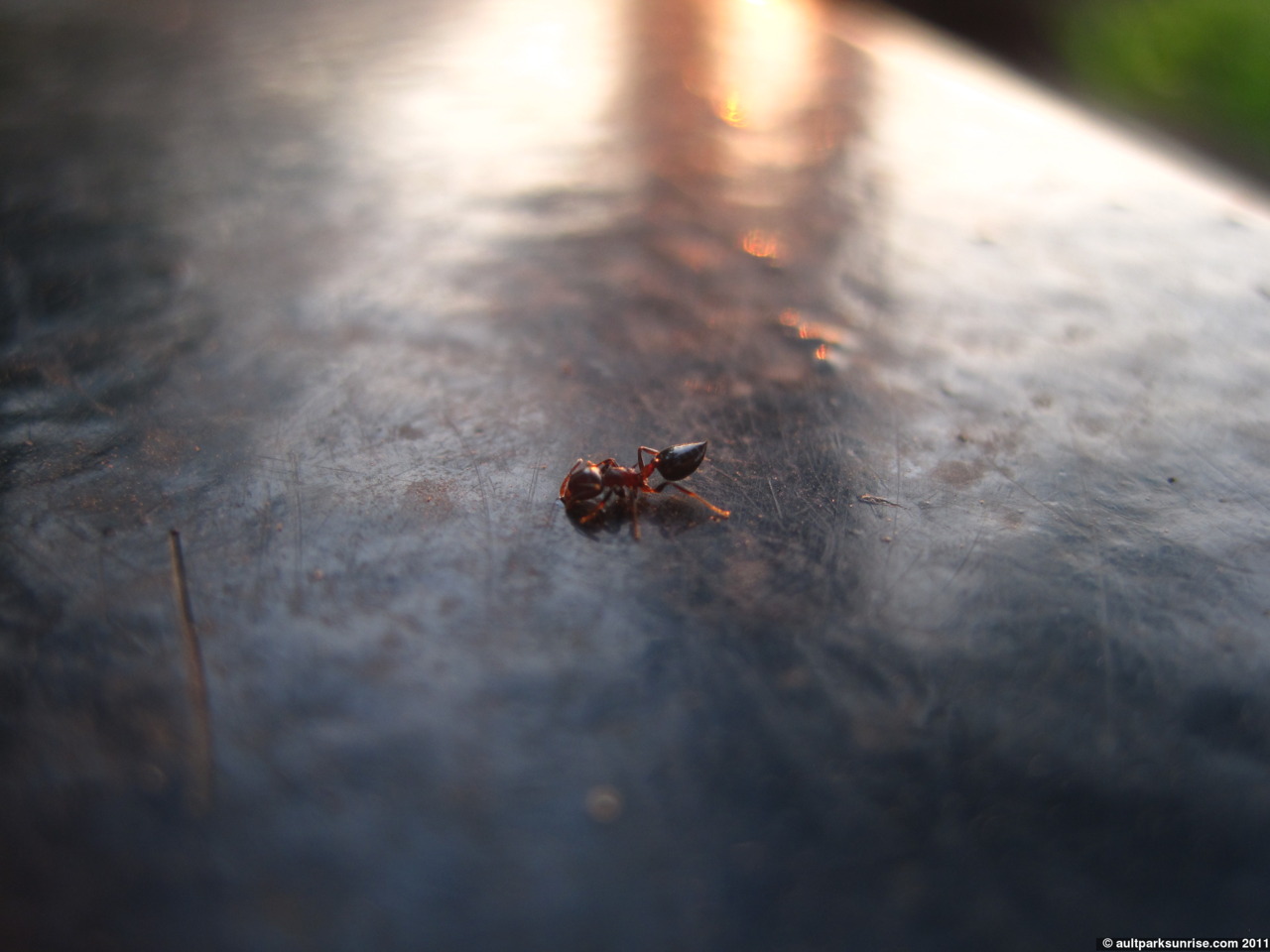 I stayed here for several minutes trying to catch an ant against this backdrop. All I could get was a blurry streak. I like it anyway.