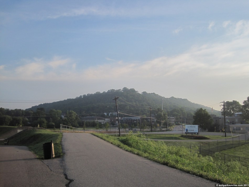I spent the first 20 minutes after sunrise in Ault Park. After watching the sun come up, and peering down into the valley at the thick foggy layer, I decided that I wanted to try out, for the second time, the new route that I “created” that takes me from Heekin Overlook to Lunken Airfield to the “Marina” to Alms Park and back to Mt. Lookout. I was feeling up to task of knocking out the 9 mile loop in under an hour. I am considering adding this route to the daily (or psuedo-daily) morning ritual. I think it would be neat to start at Ault Park, do the loop, and take pictures at the same landmarks along the way. It would be an extension to the existing Ault Park Sunrise project. The landmarks along the way would be: