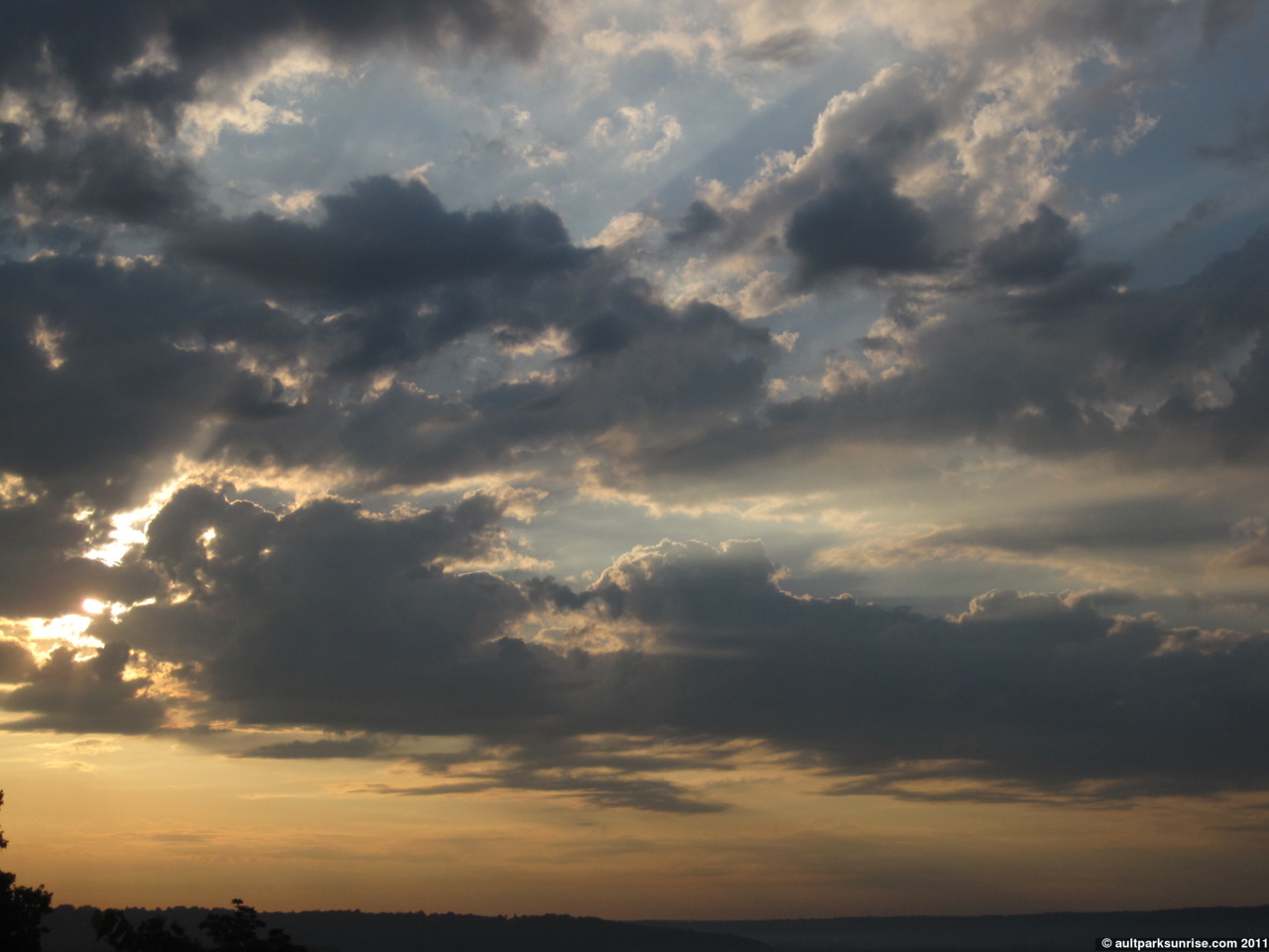 Rays of light streaking through the sky.