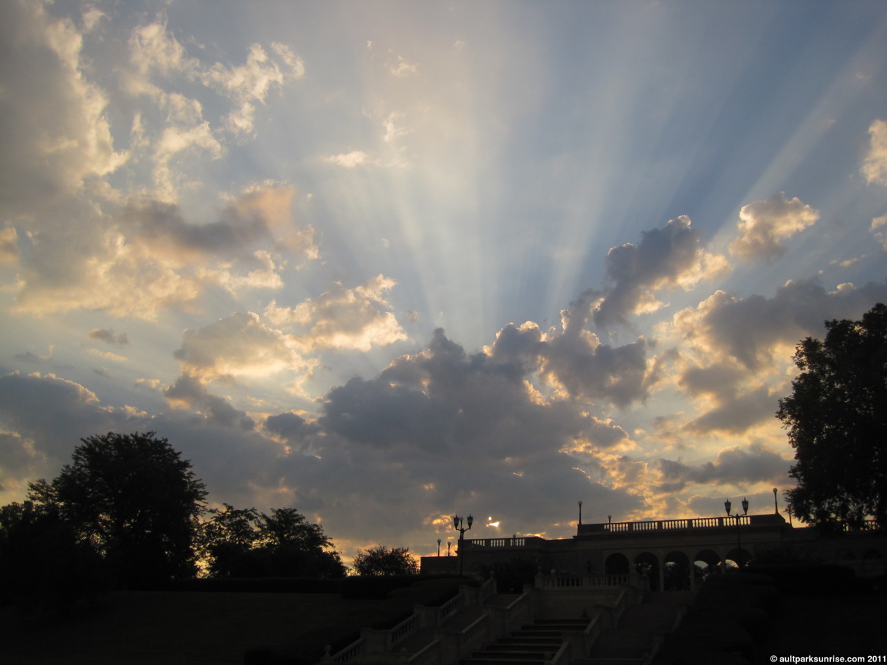 On the way out of the park I took a final picture of the pavilion. The rays of light were coming through the clouds just above the structure.