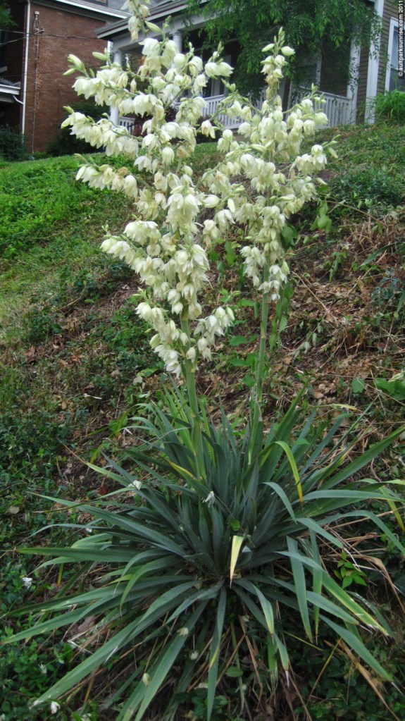 One curious thing about the yuccas is that Wikipedia tells me that they are indeed not native to this area. The map shows flowering yuccas almost exclusively in the southwest. I wonder if all the local yuccas are related? Did a single nursery in the past few decades start selling yuccas in Cincinnati? How long have they been here? This reminds me that I haven’t made a post about the local “Cincinnati Banana Trees”. I’ll save that for later in the summer when they start blooming :).
