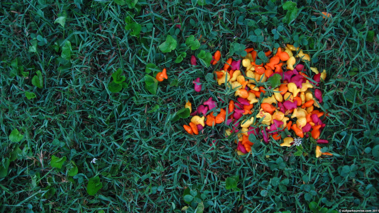 Down by one of the rubbish piles there was a telltale sign of a human baby! I mentally called this “Baby Tracks”. I snaked on a few of these myself over the last two weeks. My nephew had a box of these multi-colored fish. I didn’t taste them to see if they held their crunch over night 🙂