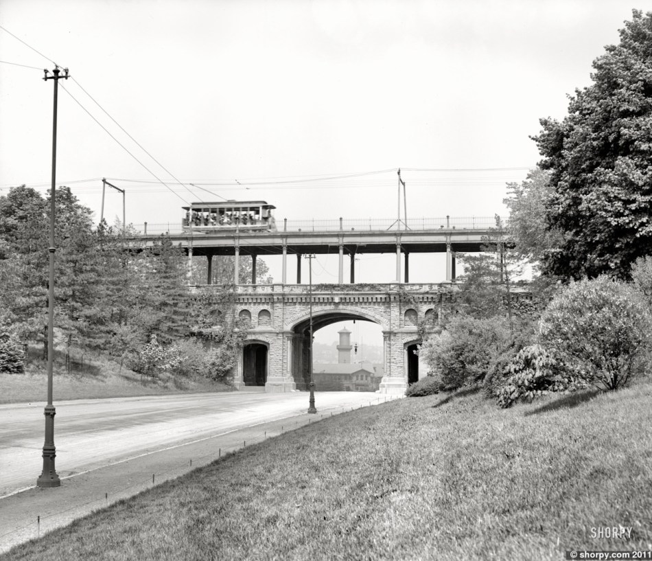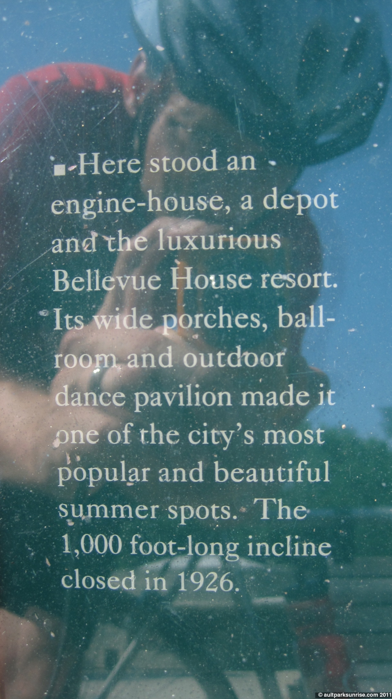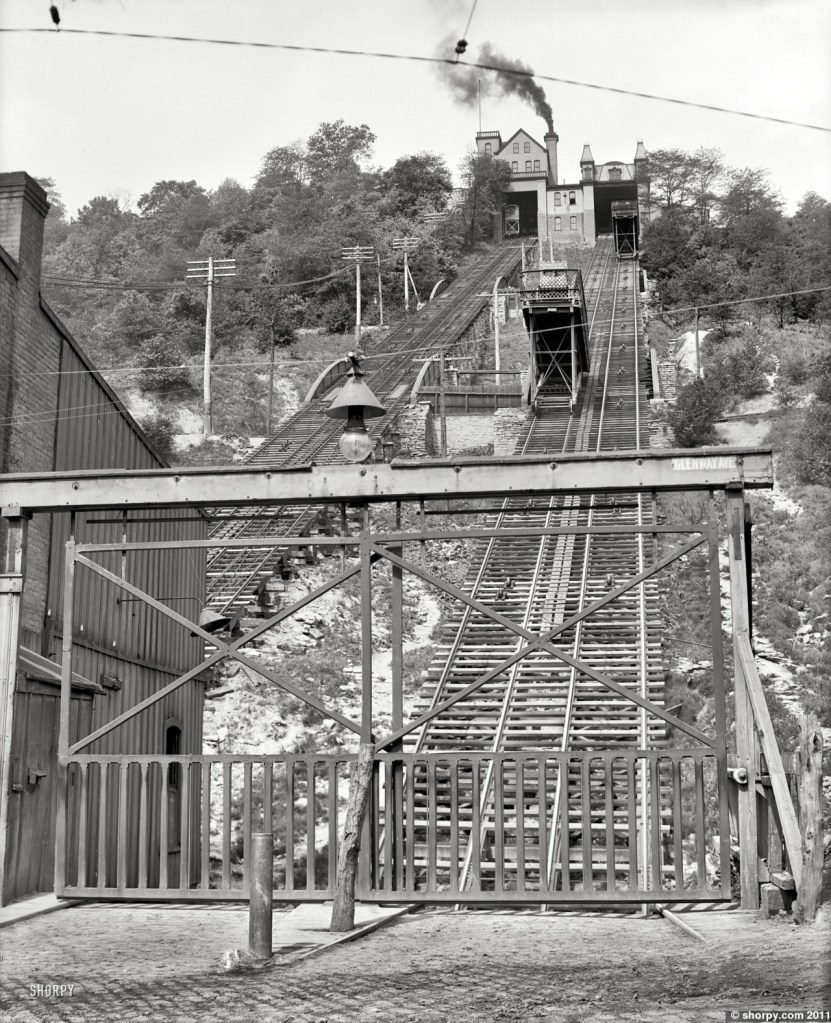 “Here stood an engine-house, a depot and the luxurious Bellevue House resort. Its wide porches, ball-room and outdoor dance pavilion made it one of the city’s most popular and beautiful summer spots. The 1,000 foot-long incline closed in 1926.”