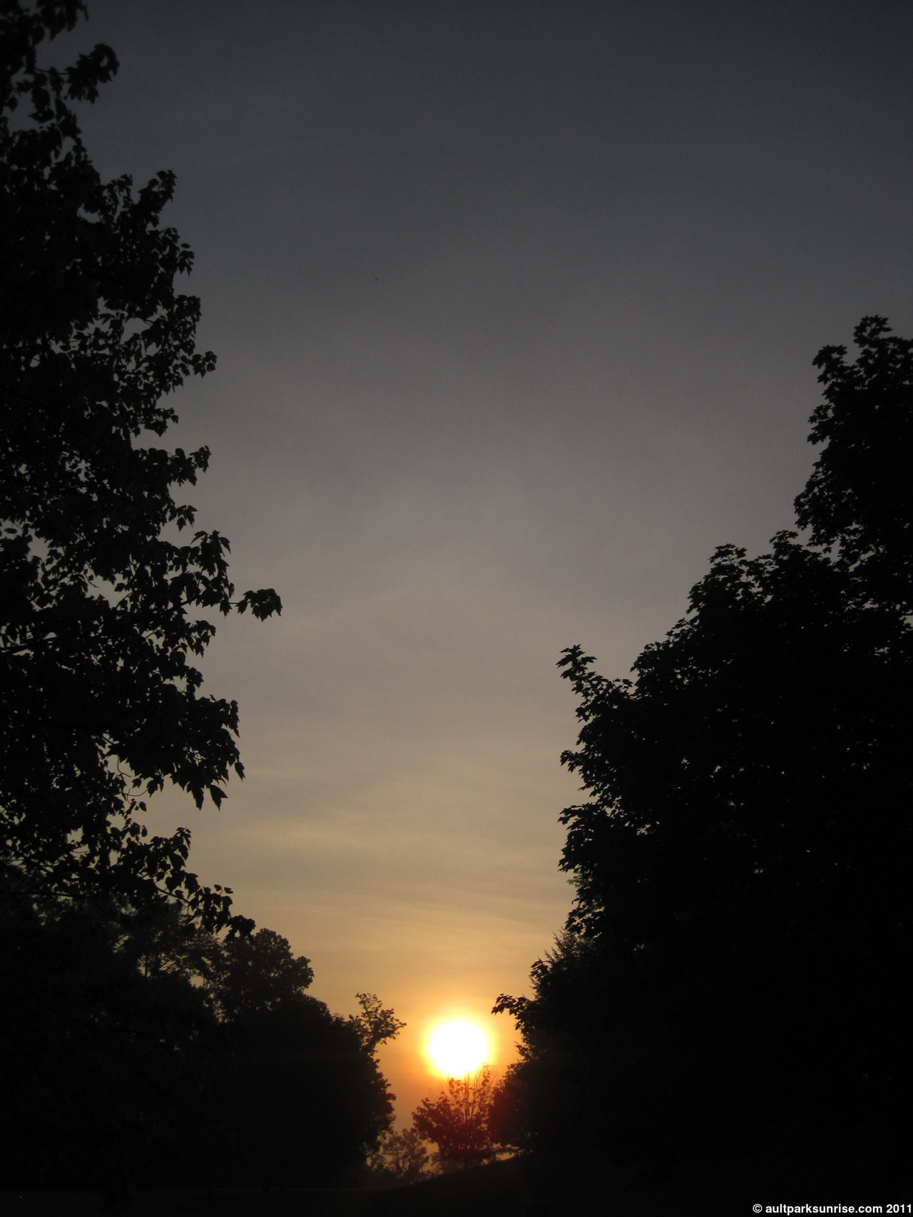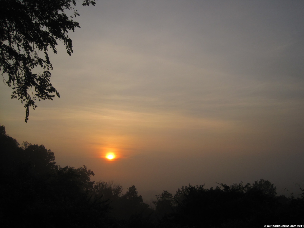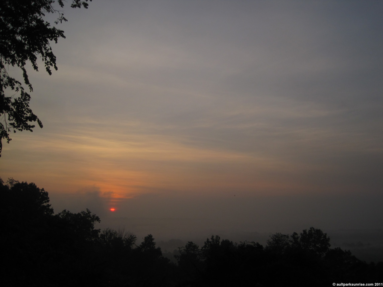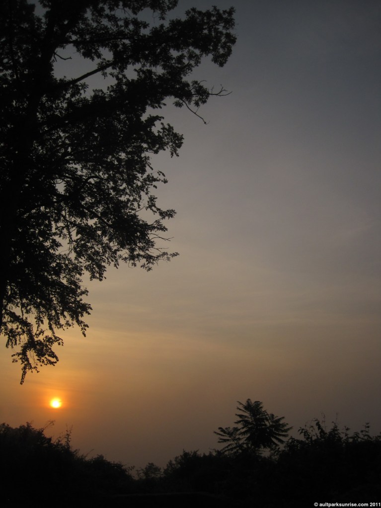 Final shot of the morning sunrise, through the trees from the overlook
