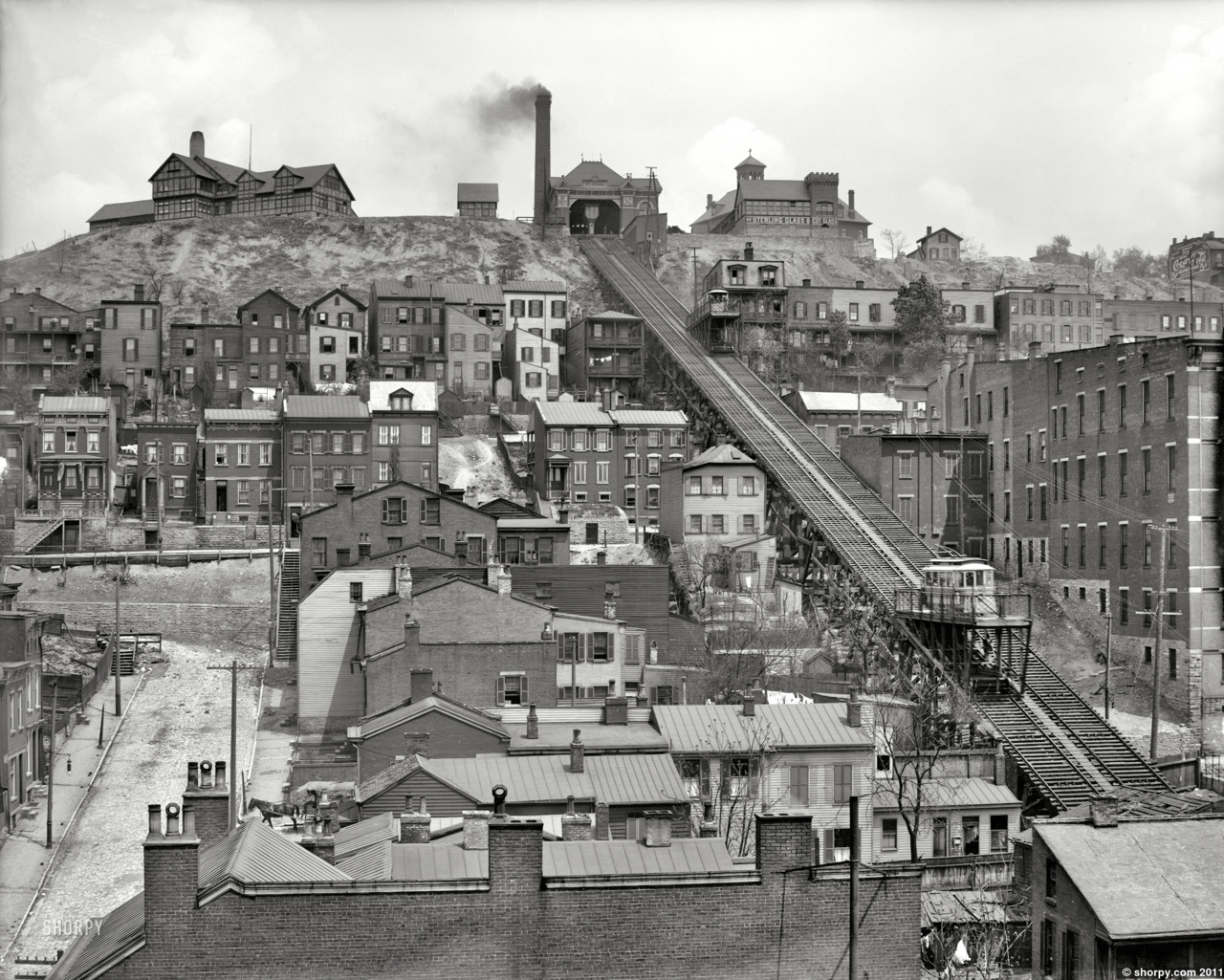 This is what the old Bellevue Incline Station used to look like coming up the hill (click the links in the caption for purchasing information from shorpy):