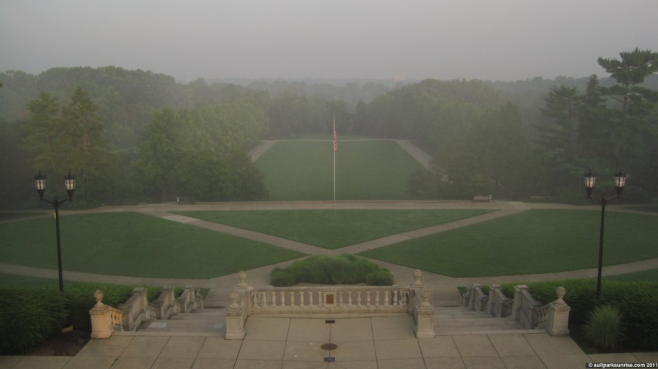 This morning’s update is a bit of a strange one. My week has been in limbo because my car is in the shop getting checked out. The nice side effect of this transportation issue is that I’ve been forced to rely on my bike a lot more than I normally am used to. I’ve commuted to work twice (never done that before) and realized that the 6.5mi commute is seriously not bad. I can do it in 25 minutes which is comparable to the 15 minutes it takes by car. The route is mostly residential and feels safe. I also commuted to the University of Cincinnati campus yesterday, a bit longer of a stretch. The heat was intense (around 90F) and I think my body wanted the extra sleep this morning to make up for the extra physical activity. Long story short, yesterday I wasn’t able to get near my laptop (I keep it at work) so sunrise 68 is coming at you a day late. That’s OK though because I was able to scope out Bellevue Park, one of my favorites in Clifton that I don’t get to visit nearly enough, and realized some historically significant facts about it. Notch one more up for my respect to the Cincinnati Parks program.