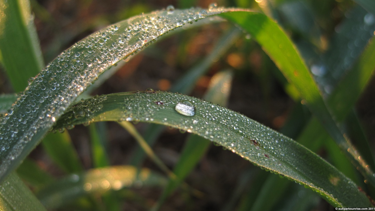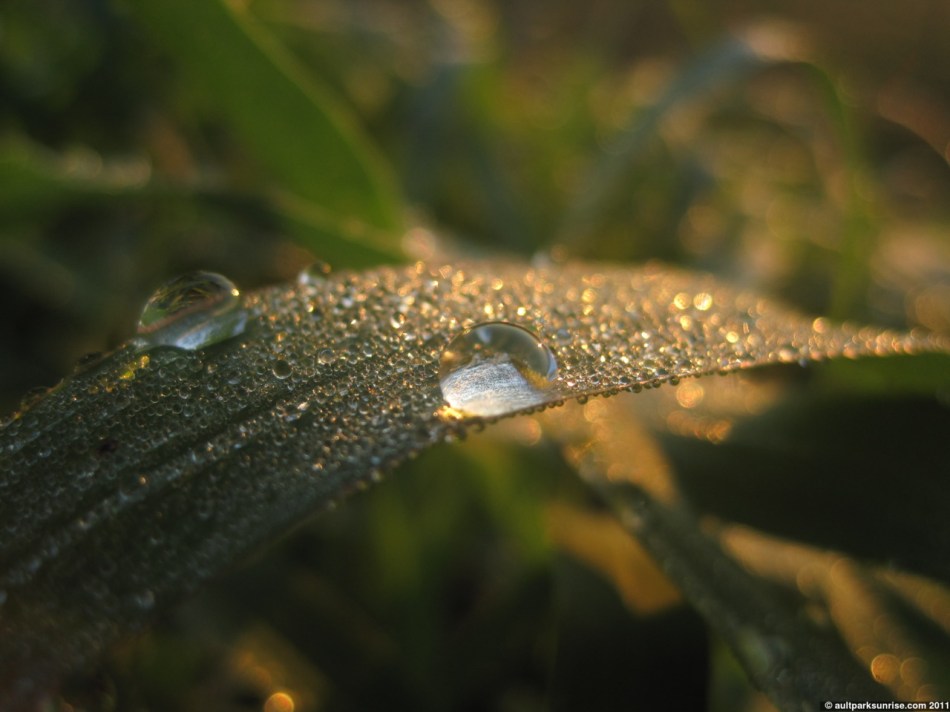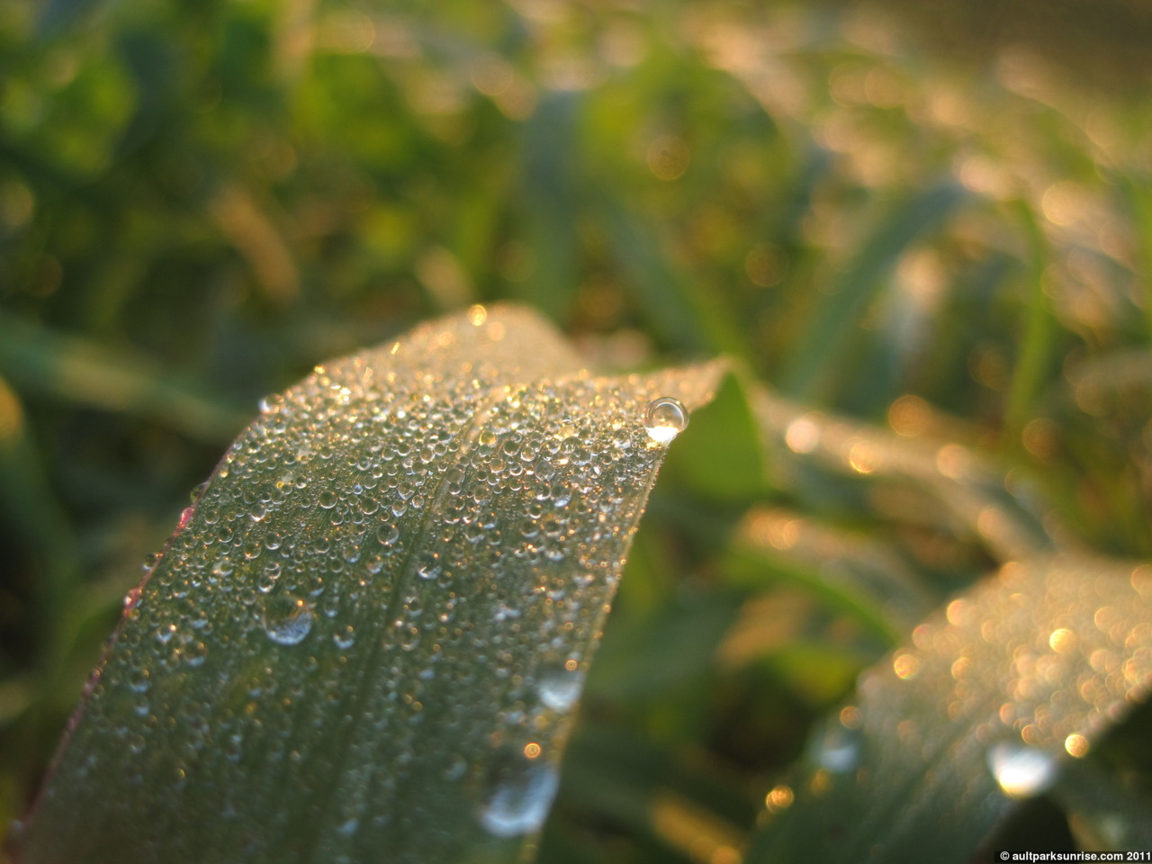 The morning dew after condensing overnight on the overgrown grass along the bike path.