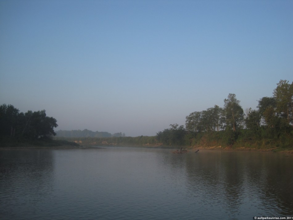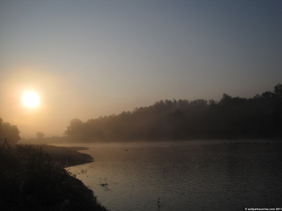 The Little Miami River, with a bit of mist in the air. By now the sun is already dropping the water out of the air and into the forest.