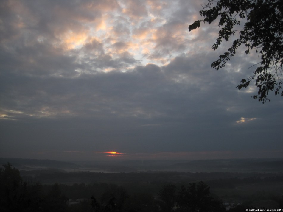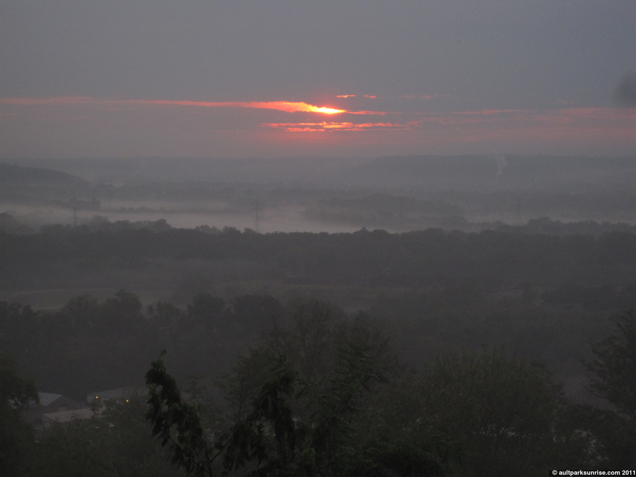 I’ve skipped the last several wet overcast mornings but today at 7:00am I ventured out into the humid streets to Ault Park. The sunrise this morning was at 7:22am, the latest so far. Looking back, Sunrise 1 was at 7:14am. I’ve broken through the calendar symmetry and am now proceeding into new territory! I never regret going out in a misty morning, especially on such a temperate day as today. The temperature was in the mid sixties, and other than some light fog here and there I didn’t get too wet.