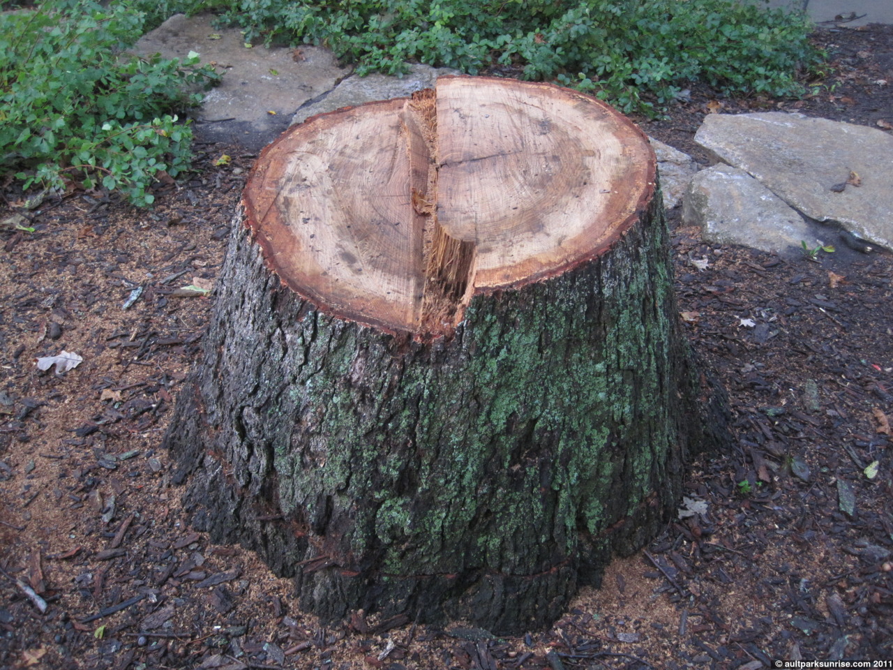 I came up with a great idea for what to do with the dead oak tree, but unfortunately it looks like my idea came about a week too late. I realized that this dead oak would have been an excellent opportunity to create one of those stump carvings that I’ve seen in the neighborhood. The stump is probably too low now to do anything with. It would have been a beautiful piece of art. Here’s an example that I found on the way home: