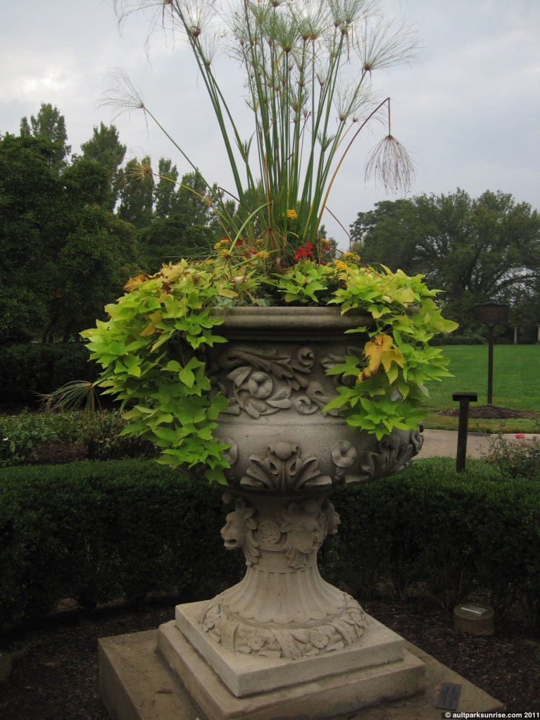 This is the centerpiece to one of the gardens in the Arboretum. I actually took this picture so I can use it for ideas for future potted gardens.