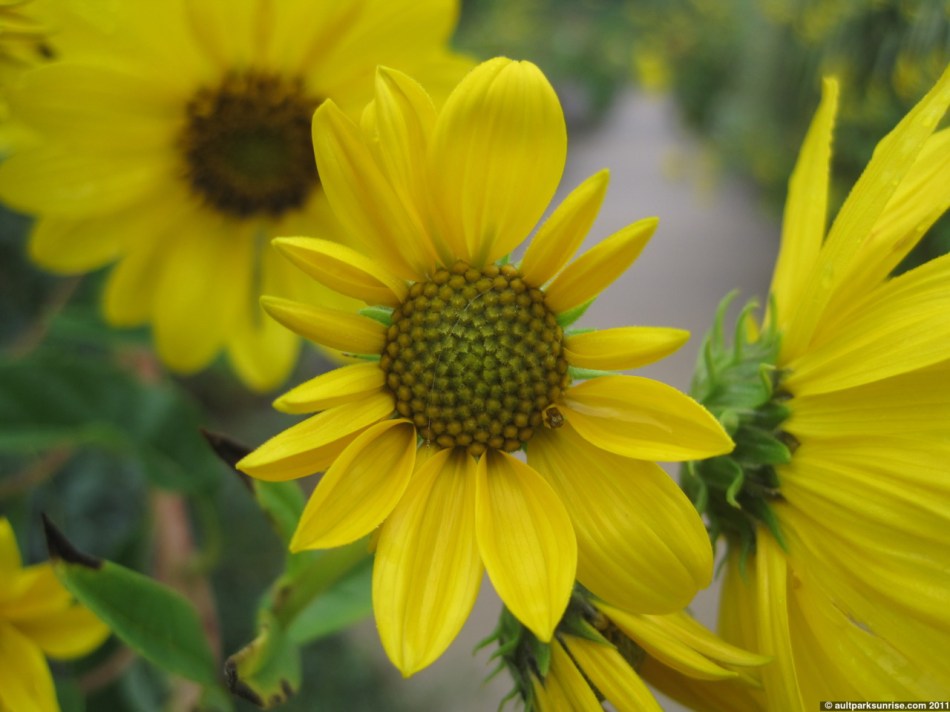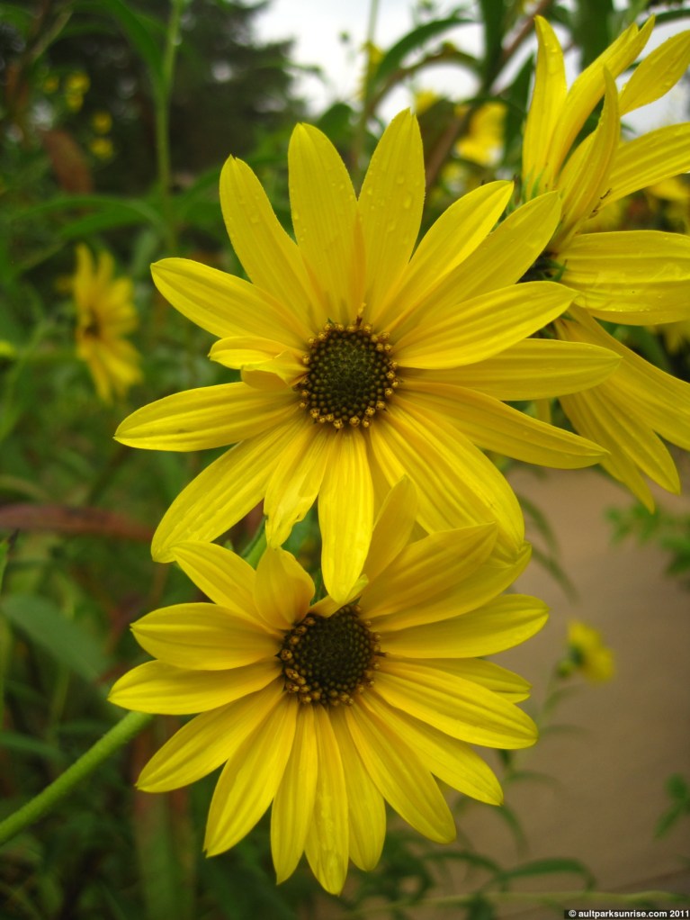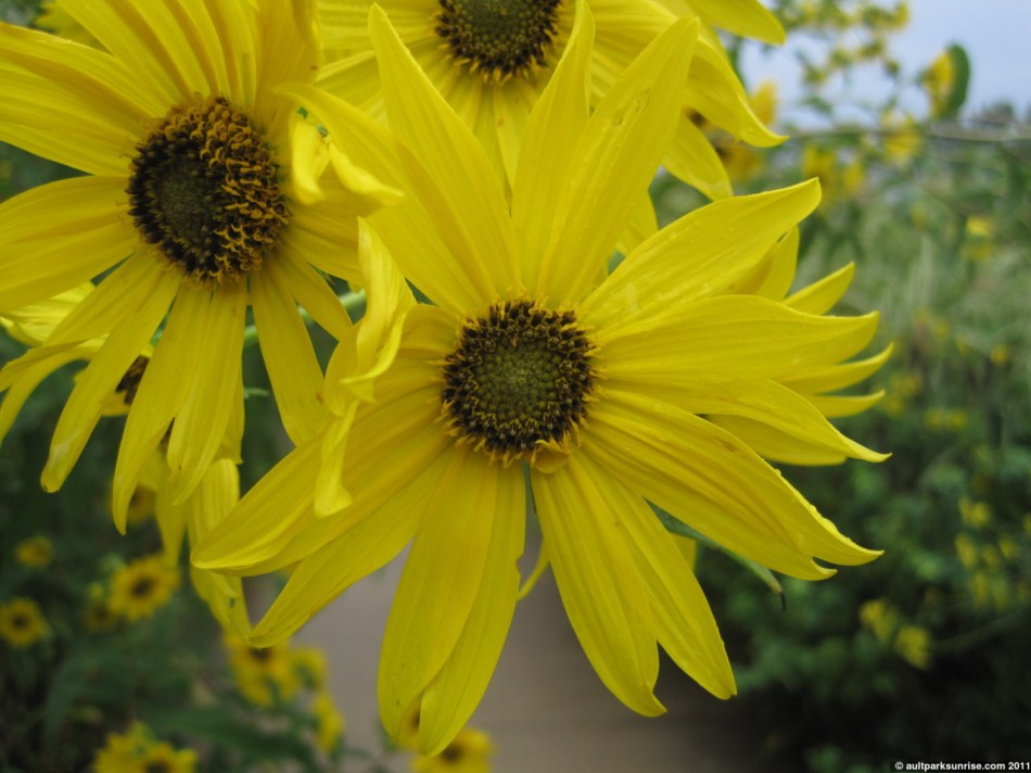 When I found them in the prairie, I called them “prairie sunflowers”. With a bit of general googling of terms such as “yellow prairie flowers” with a touch of “late summer bloom”, I uncovered through an image search that these are actually what are known as “Compass Plants”. They are often compared to sunflowers, and they are native to the Central East of North America. Their Latin name is “Silphium Laciniatum” and they are considered to be “classic prairie flowers”. I think it’s neat that Ault Park’s flower gardens contain species of local flora. Surprisingly, or perhaps not due their hardy nature, the  flowers down in Armleder Park’s prairie look just as healthy as their cousins up here in Ault Park.
