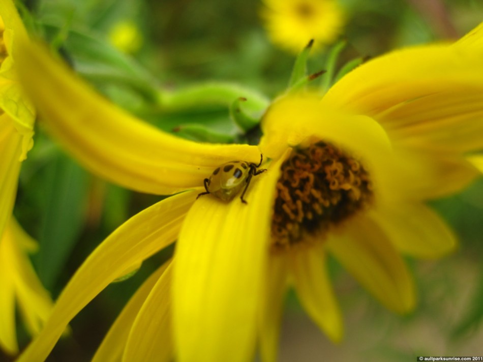 One thing I’ve found about flowers is that if you look closely, you’ll always find some insects. These yellow beetles are at home in these compass flowers.