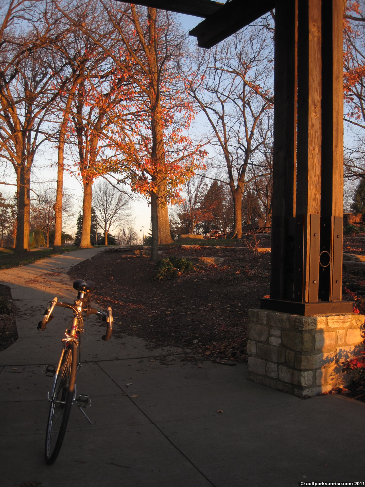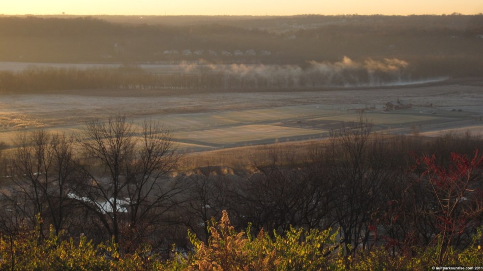 Coming into the park, now that the leaves have fallen from the trees, presents a very nice view of the sunrise coming over the valley.