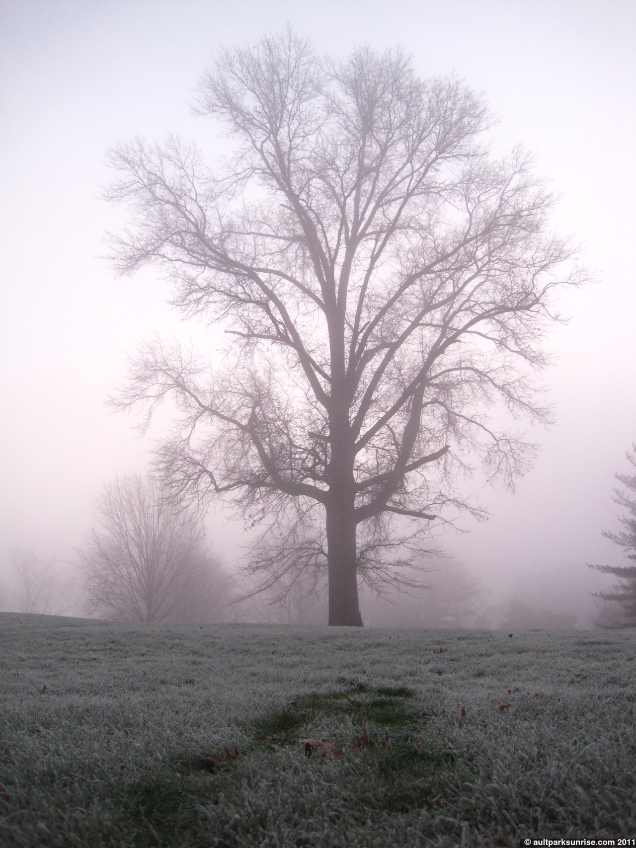 A bit closer up. It’s hard to tell from the picture, but there is a light aura in the fog just above the horizon where the sunrise is getting ready to make an appearance. This made a perfect backlight for this oak tree’s silhouette.