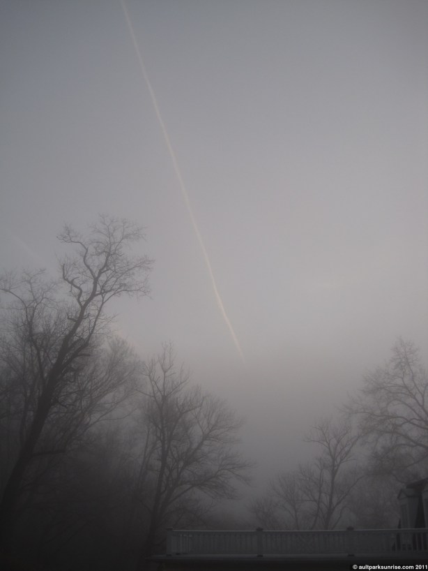 Heading back out to the main road, I was surprised to see this vapor trail high above me in the sky. Sometimes the fog is weird like that – foggy all around your peripheral but clear straight above.