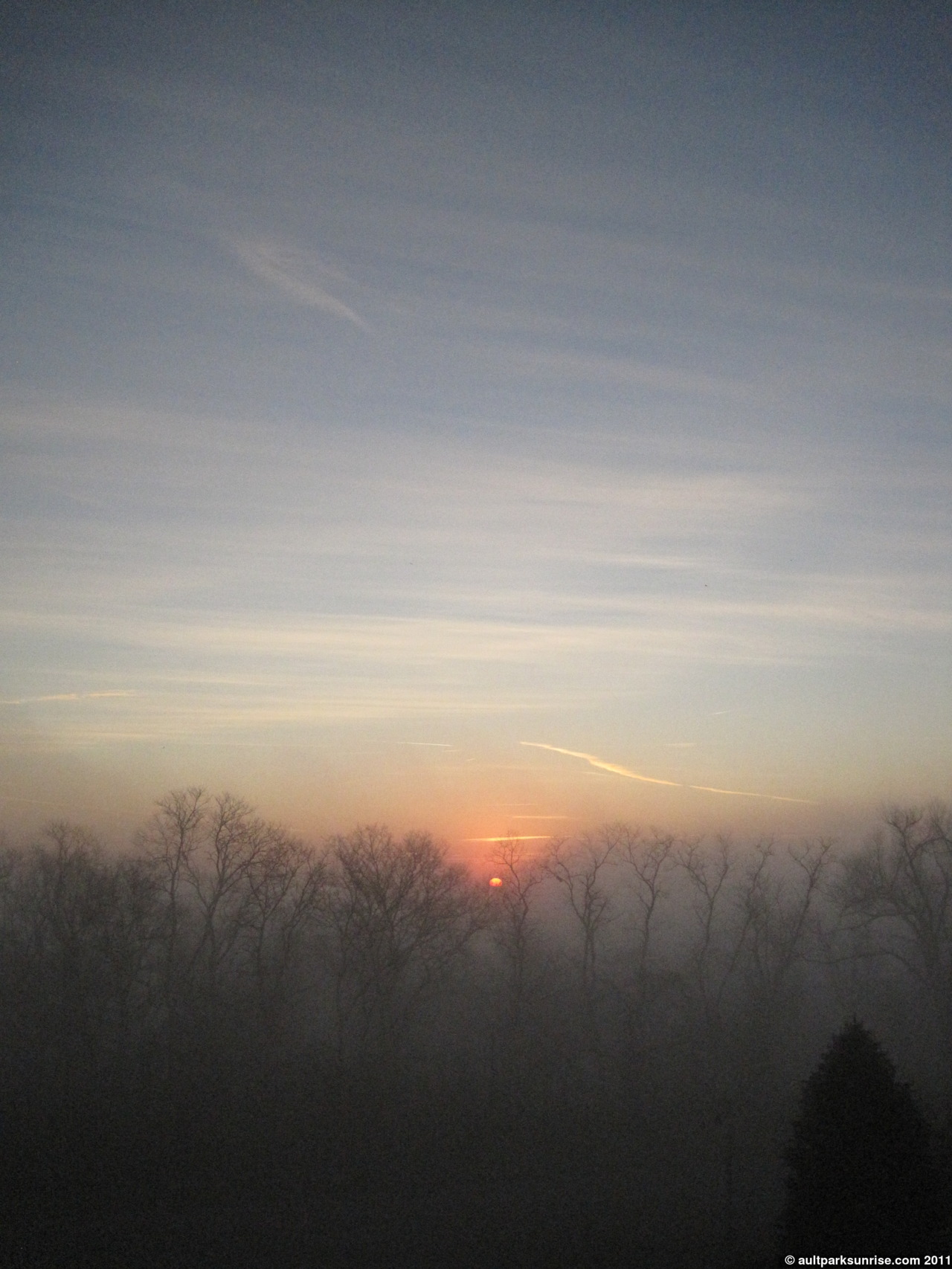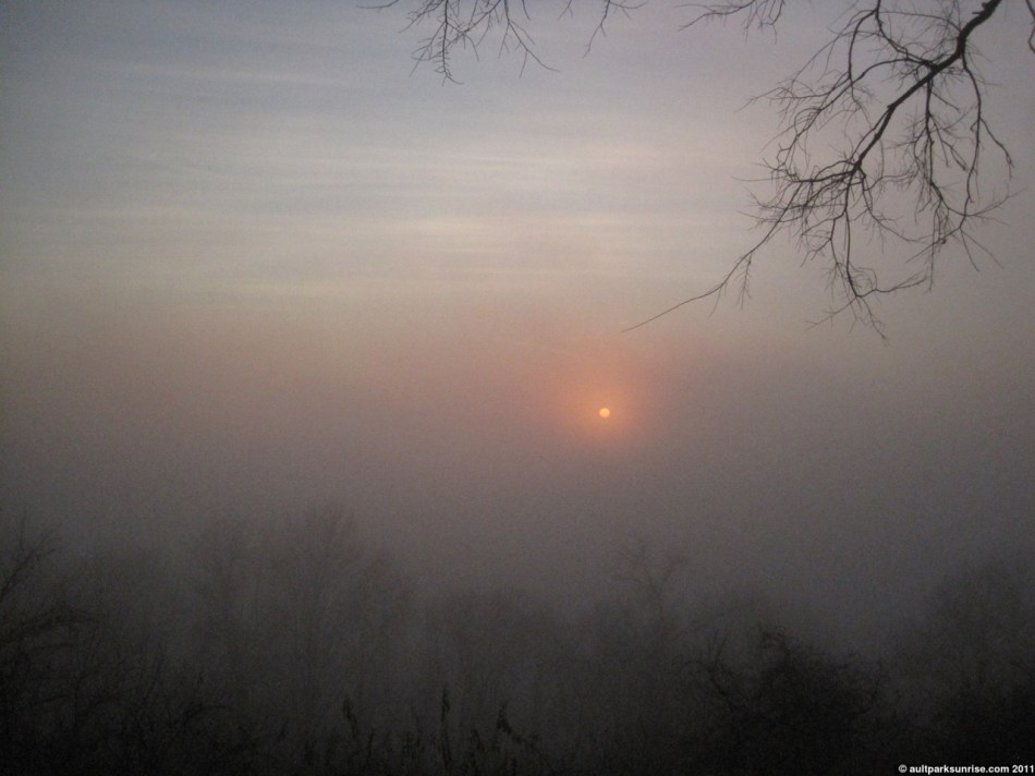 The first light as the sun struggled to overcome the dense fog.
