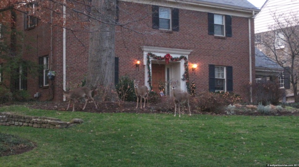I often wonder how the social dynamics of our local deer population work. The females and males stick together in packs. I seldomly see the bucks and does hanging out together, except when in the presence of a young fawn. I like to think that there is a highly structured system of markers and trail through the local forests that the deer use to stay out of each other’s way and have the deer mixer party.