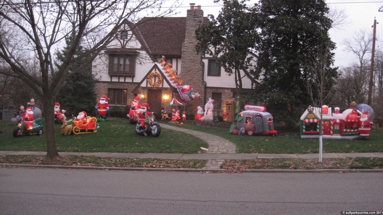 This house has it goin’ on! Their front yard is lit up with inflatable Christmas decorations.