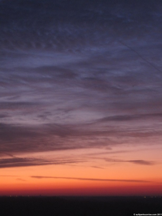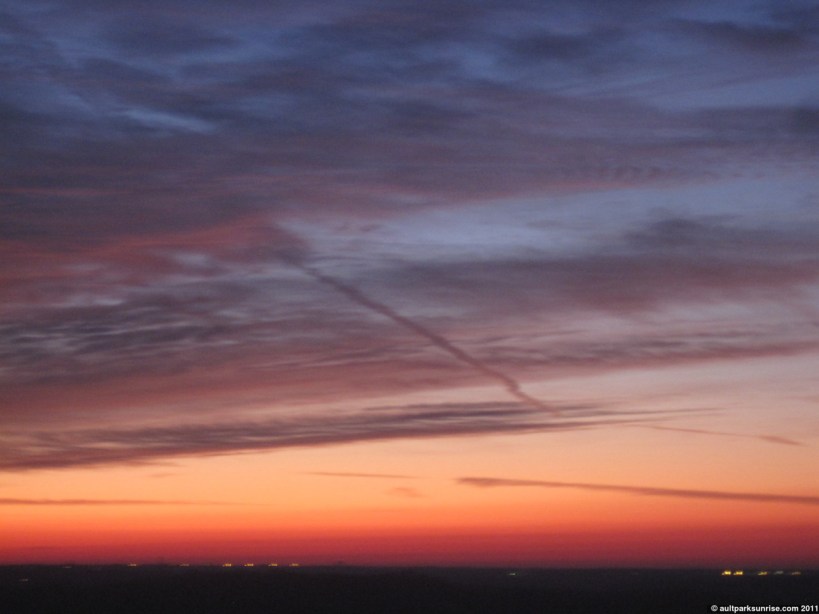 So it begins. I’m going to call this “Magenta Creep”. The magenta/fuchsia starts by the horizon where the curvature of the atmosphere and the earth allow the first traces of incoming sunlight to reflect off of the cloud layer. There’s something here about energy states of light why red shows up first, but its lost on me.