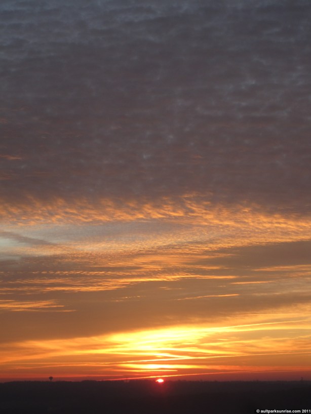 By now the upper atmosphere has lost most of its color and the sun is just about to poke out.