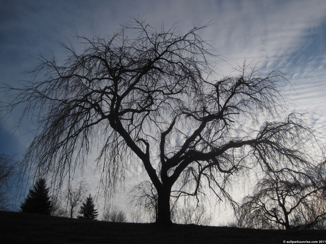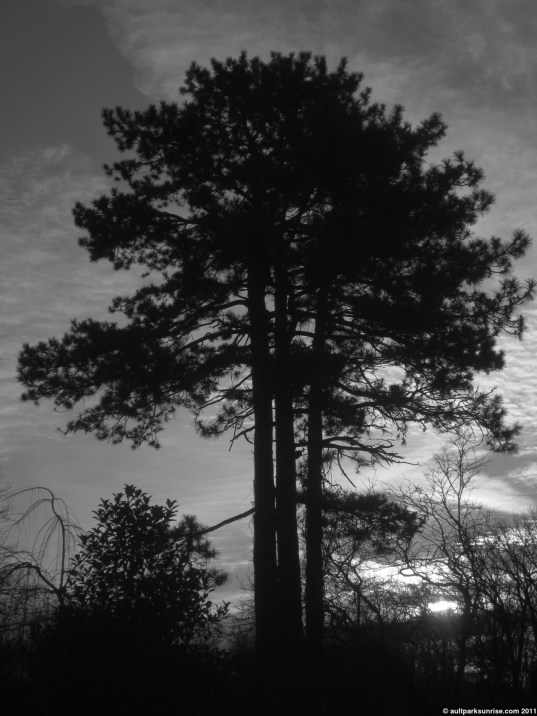 I continued my search for “tree silhouette candidates”. This lone pine and its symmetrical cousin on the other side of the lawn could make for a decent picture. Candidate #2. Not perfect, but not bad.