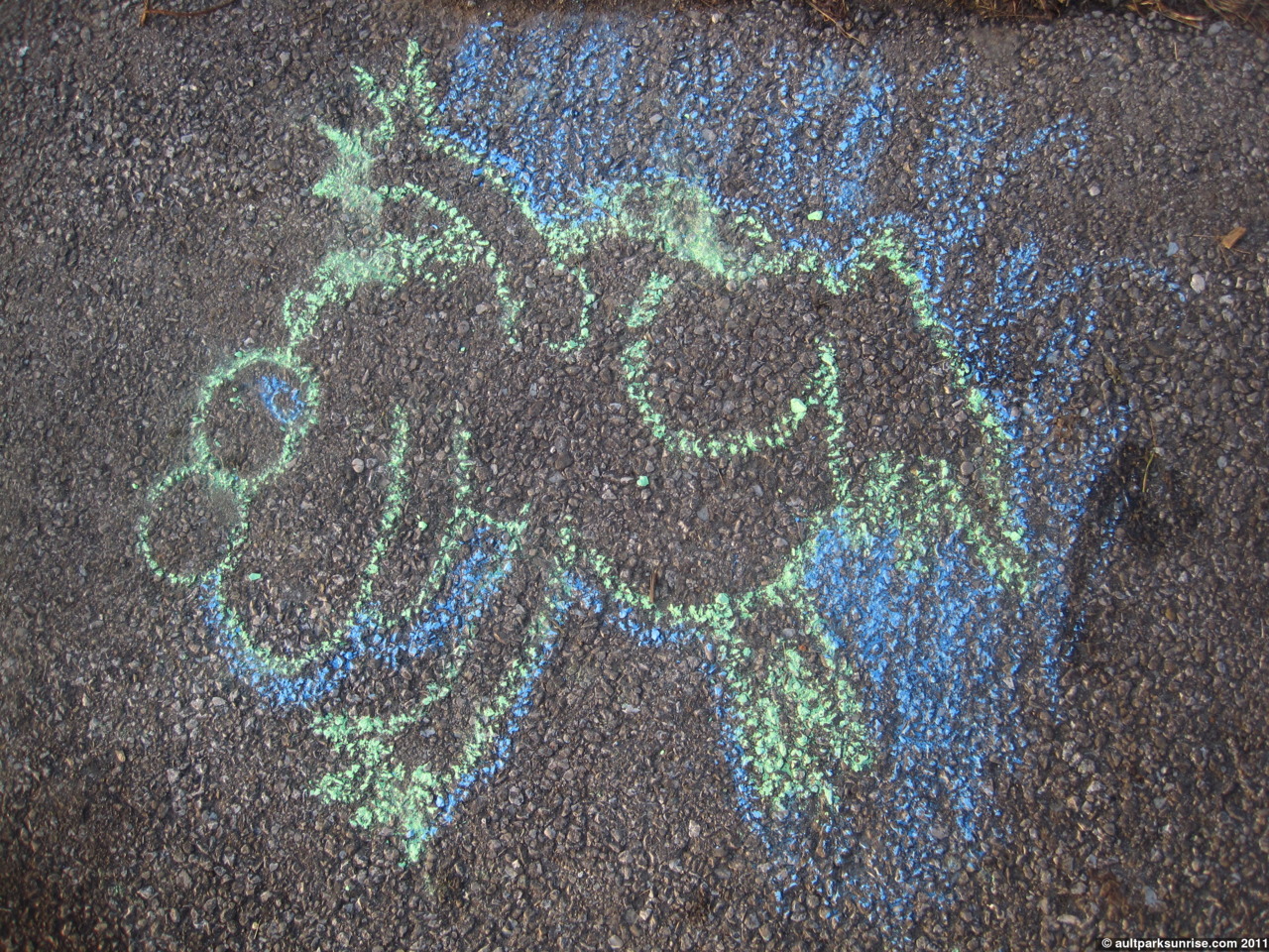 On the way out of the garden I stopped by the pavement and found this suspicious froggy chalk creation. Another frog? Is it a conspiracy? He even has four fingers like my dead one-eyed frog partner pictured previously.