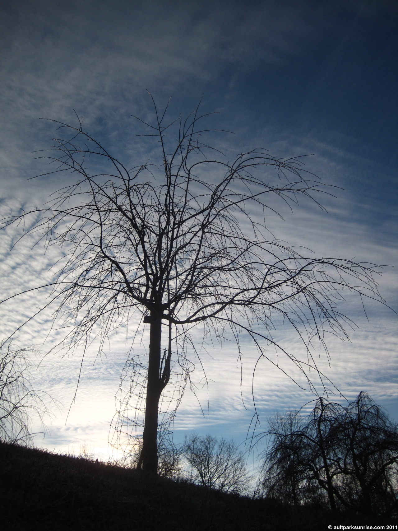 Candidates #8,9 with a rippling cloud layer as the backdrop. The direct sunlight is messing with the camera sensor and making it gray out the tree on the right.