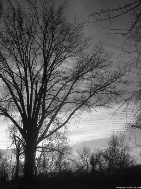 So here I am thinking about my tree silhouette project and I look over and see that beautiful tall tree that has been in every western-facing picture of Lunken Airport that I’ve taken. I have this idea that maybe if I can position myself in the forest, I could get a decent shot of the tree. I was pleasantly surprised to find that I didn’t even have to leave the trail. The branches rise up into the sky and I now know that I have no excuse! This new vantage point will be featured throughout the winter sunrises.