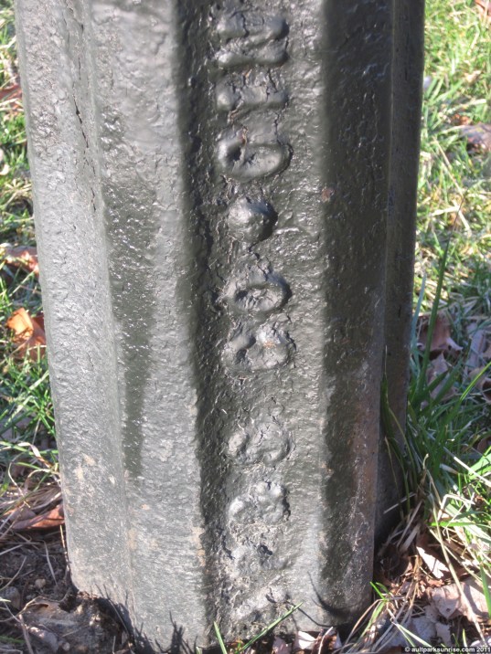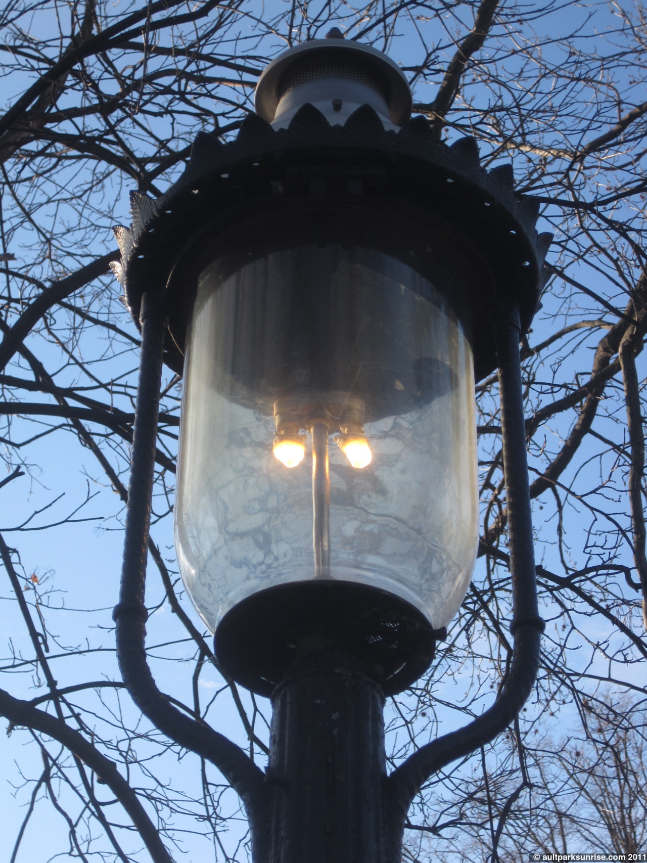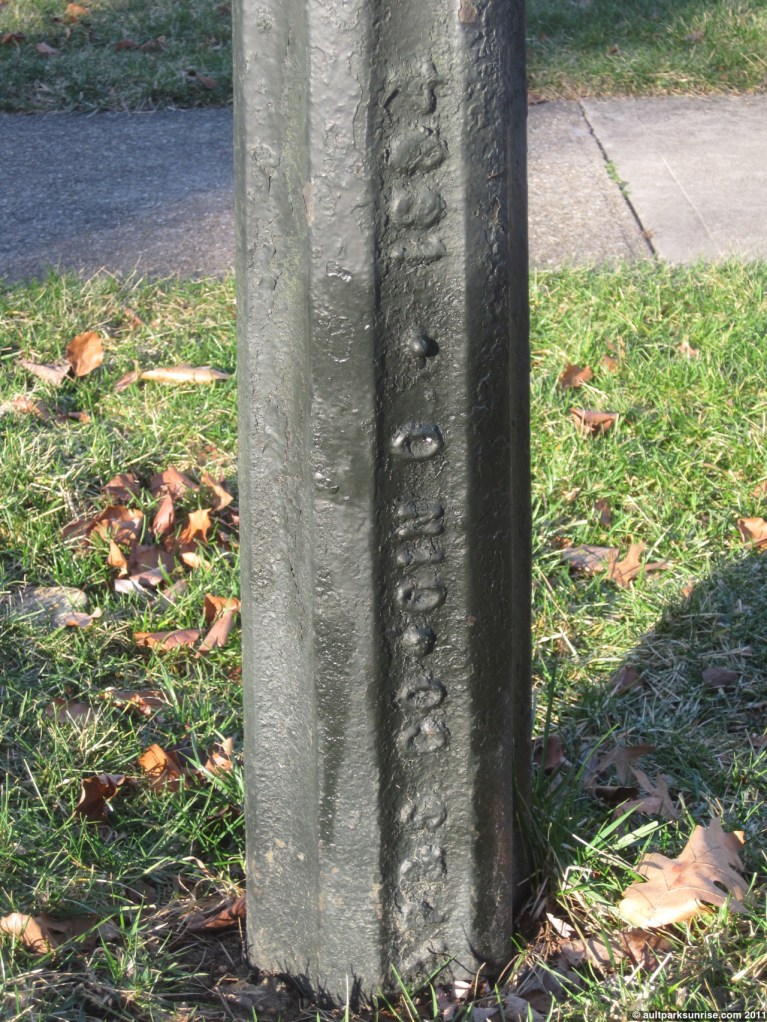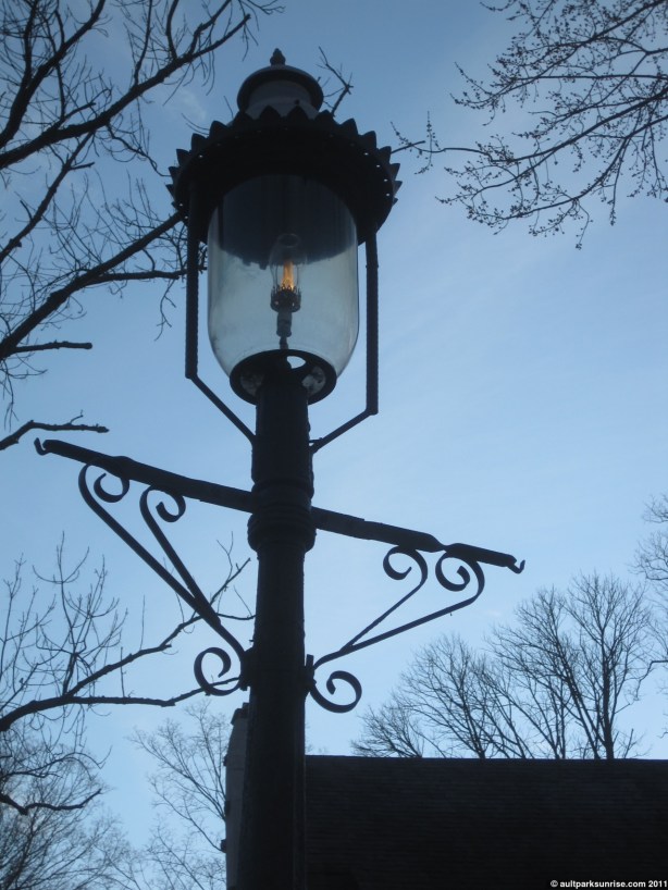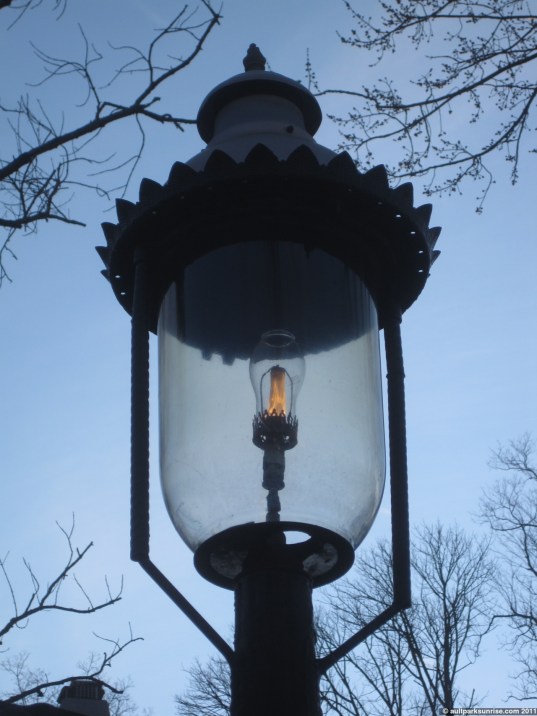 I found this “double” gas light on the edge of the Cincinnati Observatory campus. Now that I think about it I bet that the lantern at the Observatory is a gas light, but it was not turned on when I inspected it so I wouldn’t have known the difference. That lantern had a nice ivory pattern going up it, likely an “upgrade” from the standard gas light model: