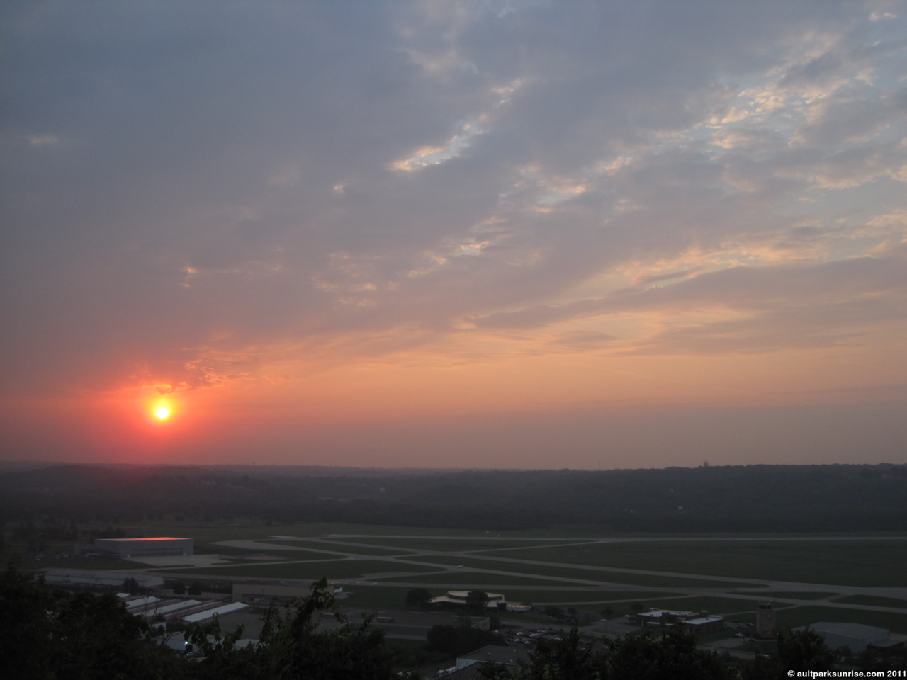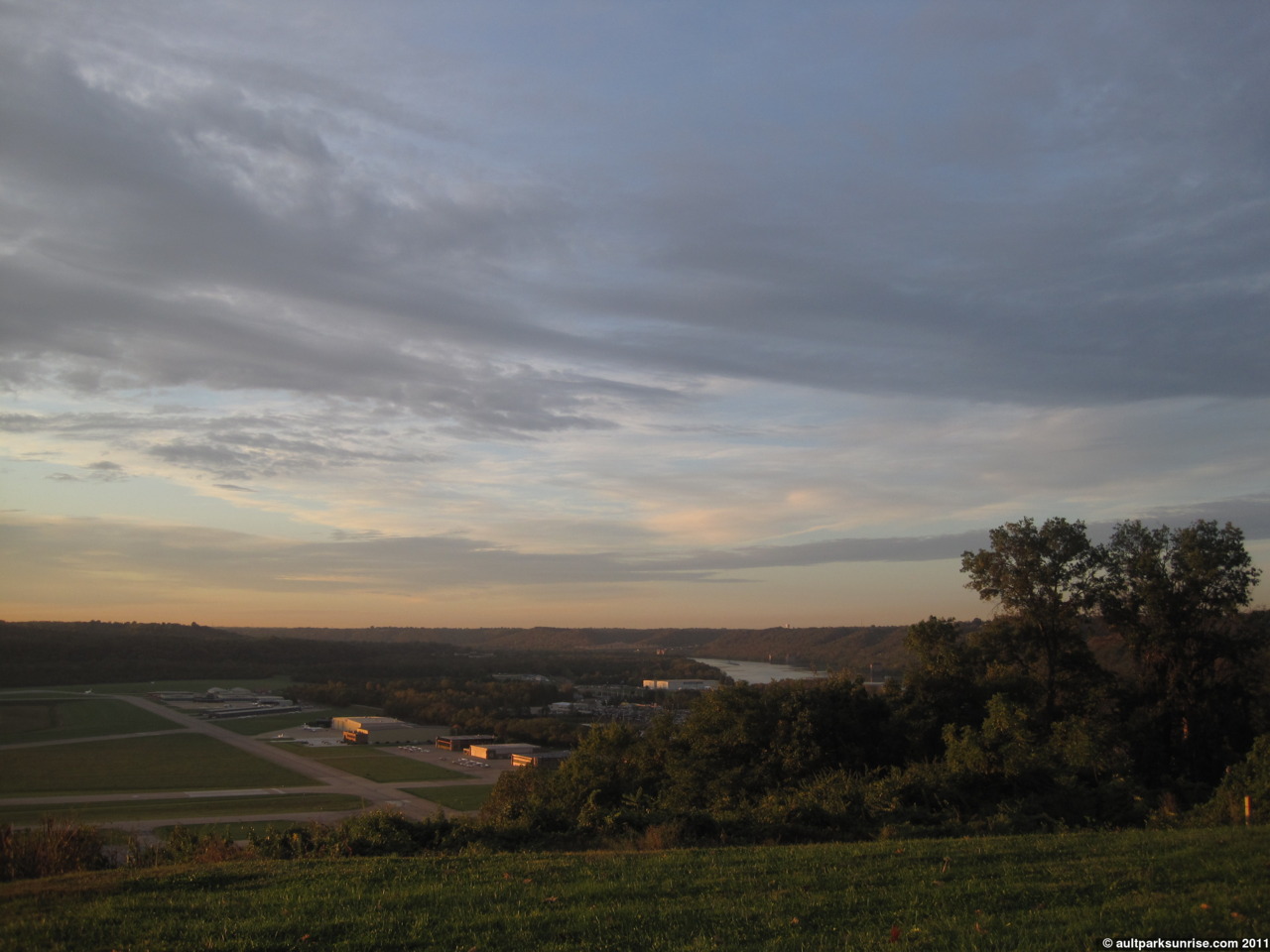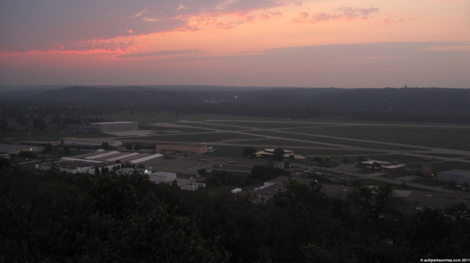 A light pink sky over Lunken Airfield at Alms Park