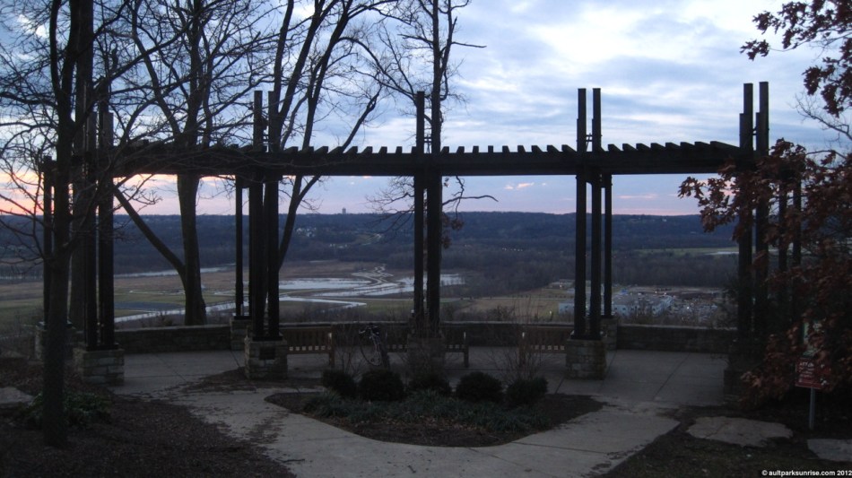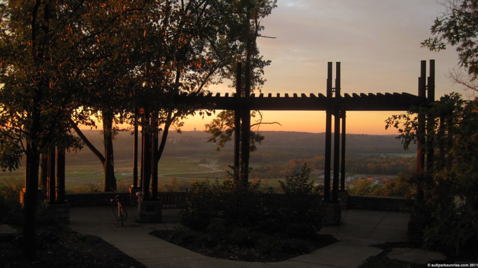 About ten minutes before sunrise I took off from the overlook to the main feature of this morning’s sunrise… the Ault Park Pavilion