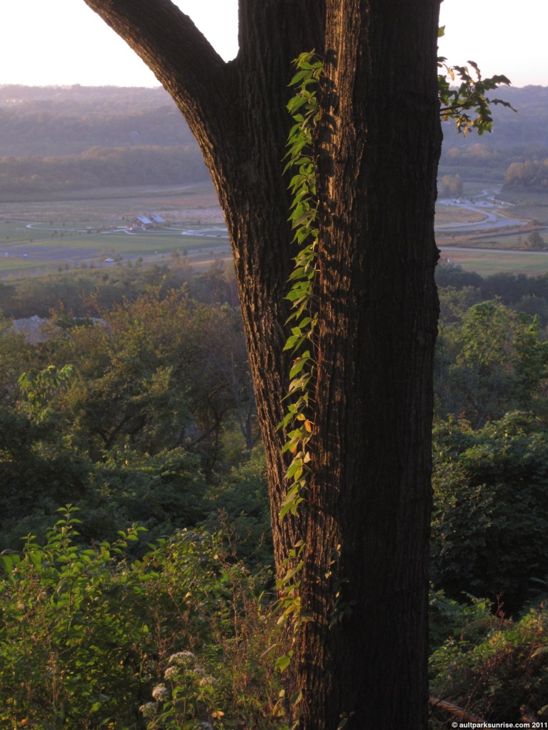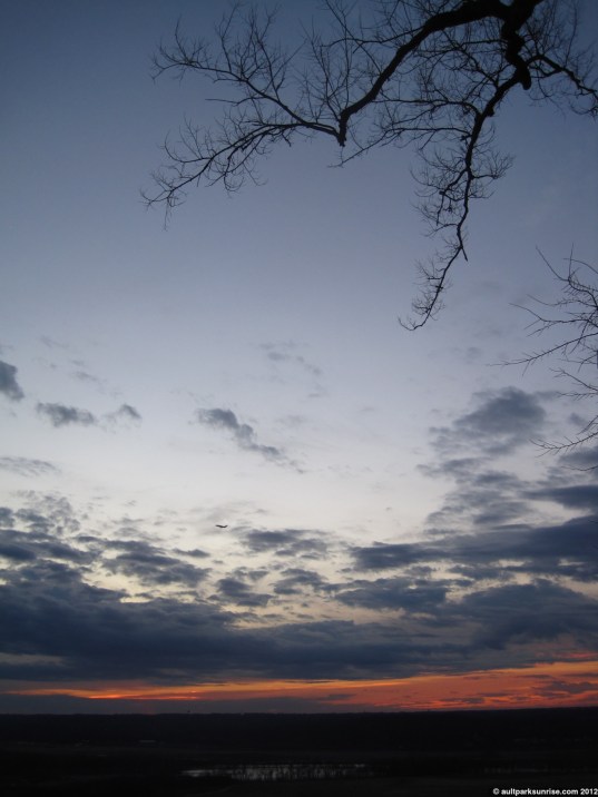 Here we see the young Tree of Heaven down by the overlook. At twilight the sky was opening up with light but the lower atmosphere was still rather dark due to the cloud bank that was blocking the early rays of twilight.