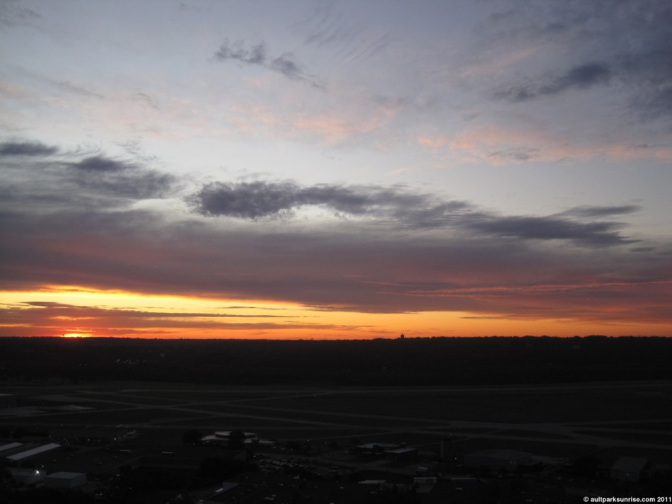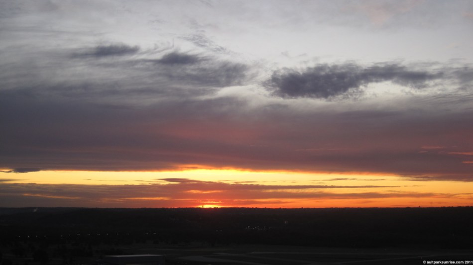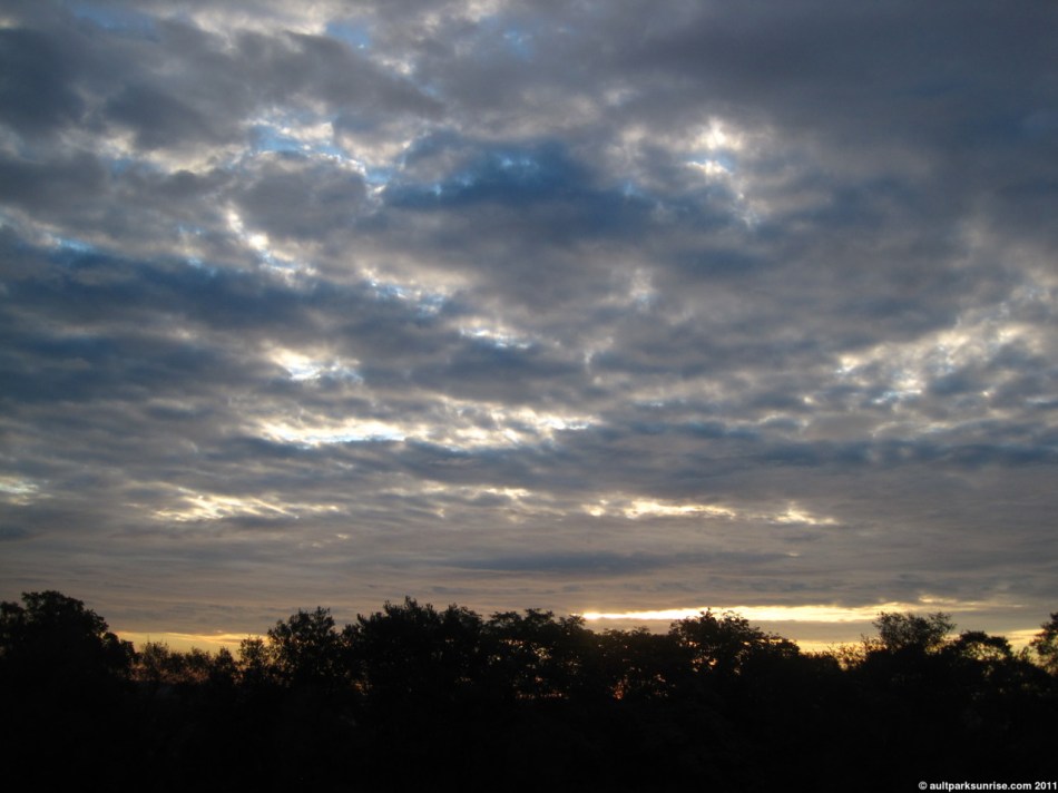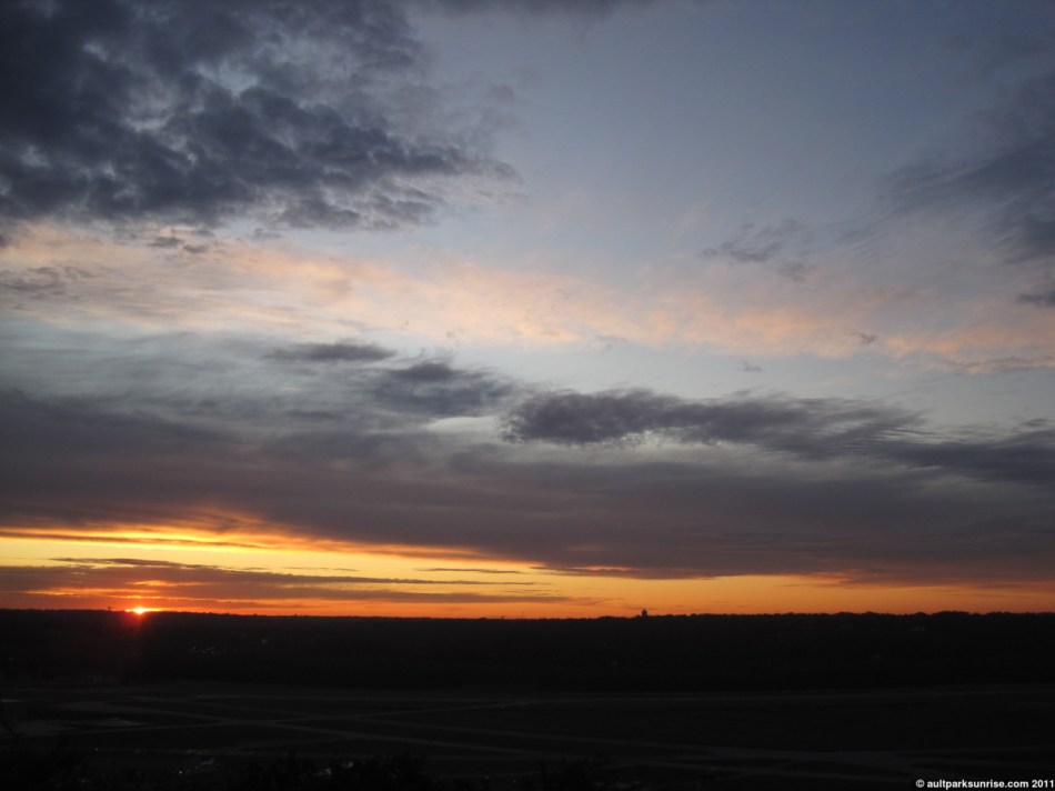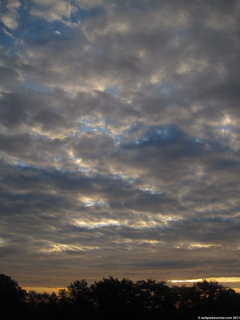 I’ll admit, I was pretty darned excited about the sunrise this morning. The atmosphere had a rich mix of cloud species with an open atmosphere behind it. It had all the pieces needed for a truly unique and majestic sunrise. In the end, it was a pretty neat sunrise but none of the early magentas, pinks, and purples made a very strong appearance. There was a thick low lying cloud bank that blocked most of the early rays of light before they could penetrate into the upper atmosphere above Ault Park.