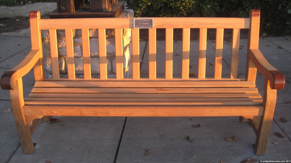 I noticed that the third and final missing bench in Heekin Overlook has been replaced. I learned from Dave that the wood that these benches are made out of is a rain-forest hardwood called “teak“. Teak wood is valued as being water resistant and historically has been used for creating ships. And there you go!